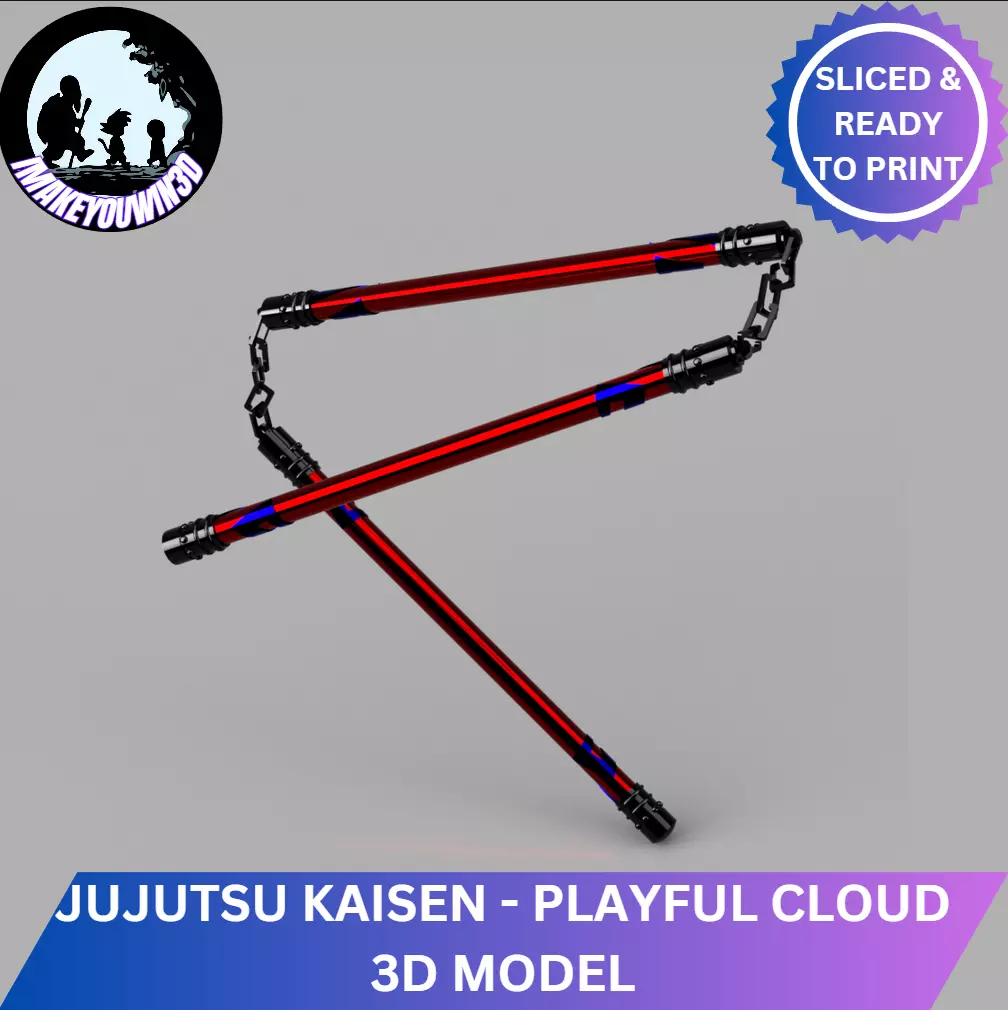 Bring the excitement of Jujutsu Kaisen to life with this detailed 3D model of the Playful Cloud 3 section staff— a key special-grade cursed tool in the anime, especially in Toji Fushiguro’s thrilling battle against Dagon! Perfect for cosplayers, collectors, and anime fans, this replica is made to capture every intense moment and the striking design of the original weapon, designed to amplify the user's strength with its cursed energy.
