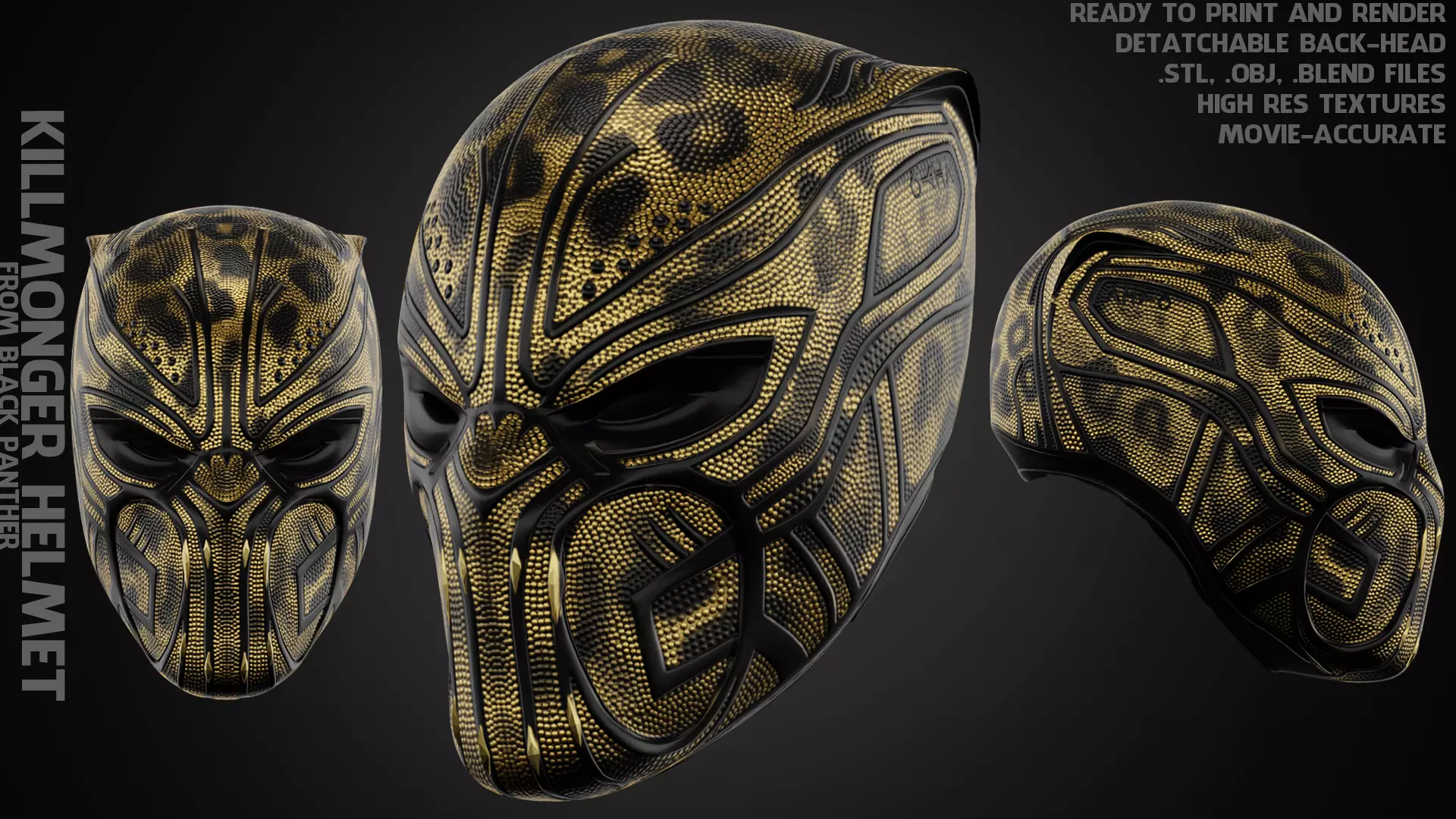 Killmonger helmet from Black Panther's movie ready to print and render with high resolution texture (movie-accurate) real size