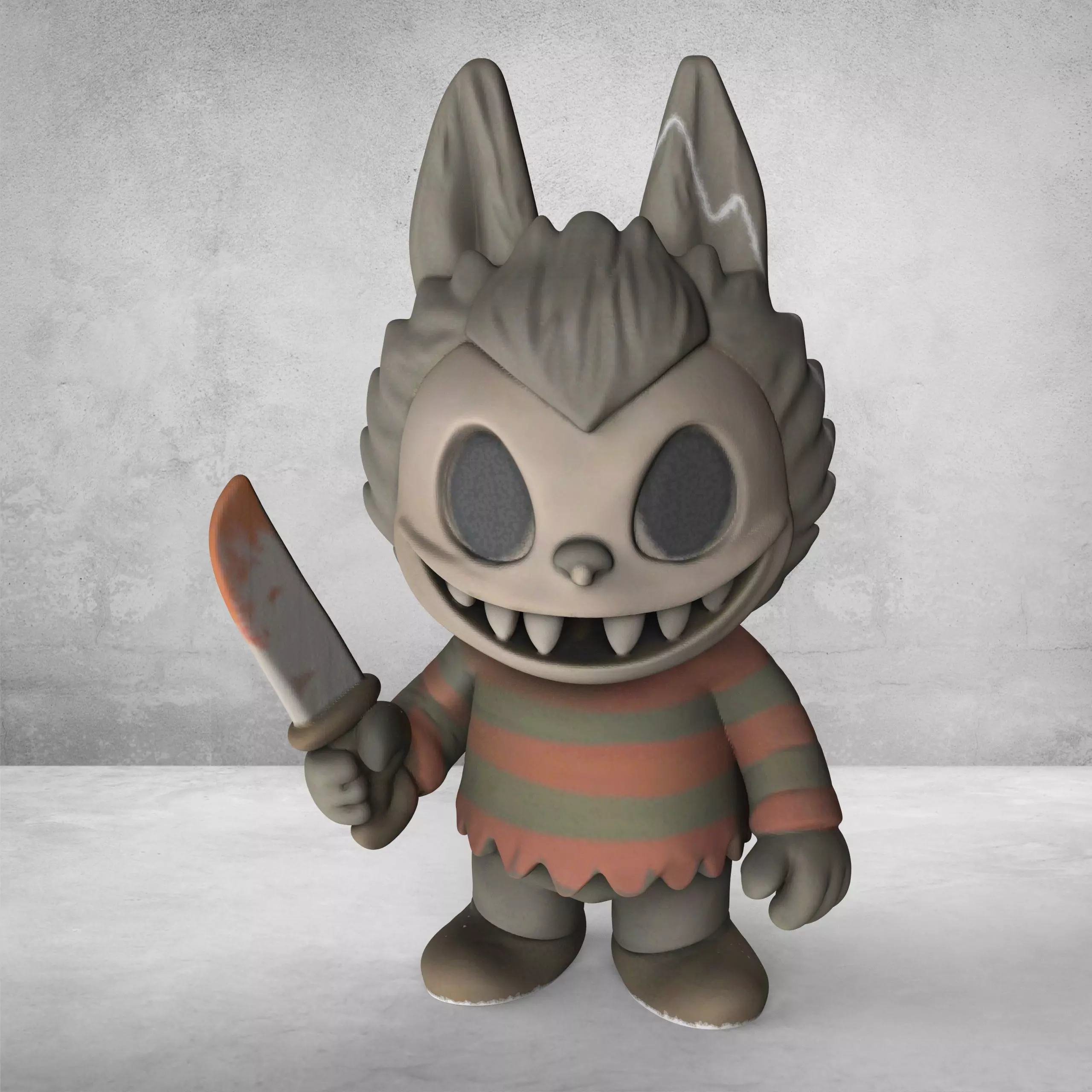 Slasher Labubu – 3D Printable Miniature Figure Slasher Labubu, also known as Twin Beast, is a fierce and wild character from the 7-piece Labubu Fantasy Warriors set. This 3D printable model showcases Labubu in an intimidating dual-weapon stance, with sharp claws and a ferocious look, perfect for any collection that loves fierce and dynamic figures.