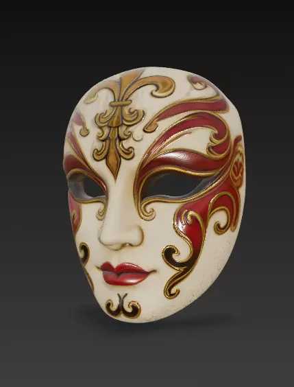 Its curved and symmetrical lines evoke the sophistication of the Venetian carnival, while the almond-shaped eyes and red lips add a mysterious and refined touch. Ideal for decorating interiors with a classic or eclectic style, or as a centerpiece in decorative art collections.