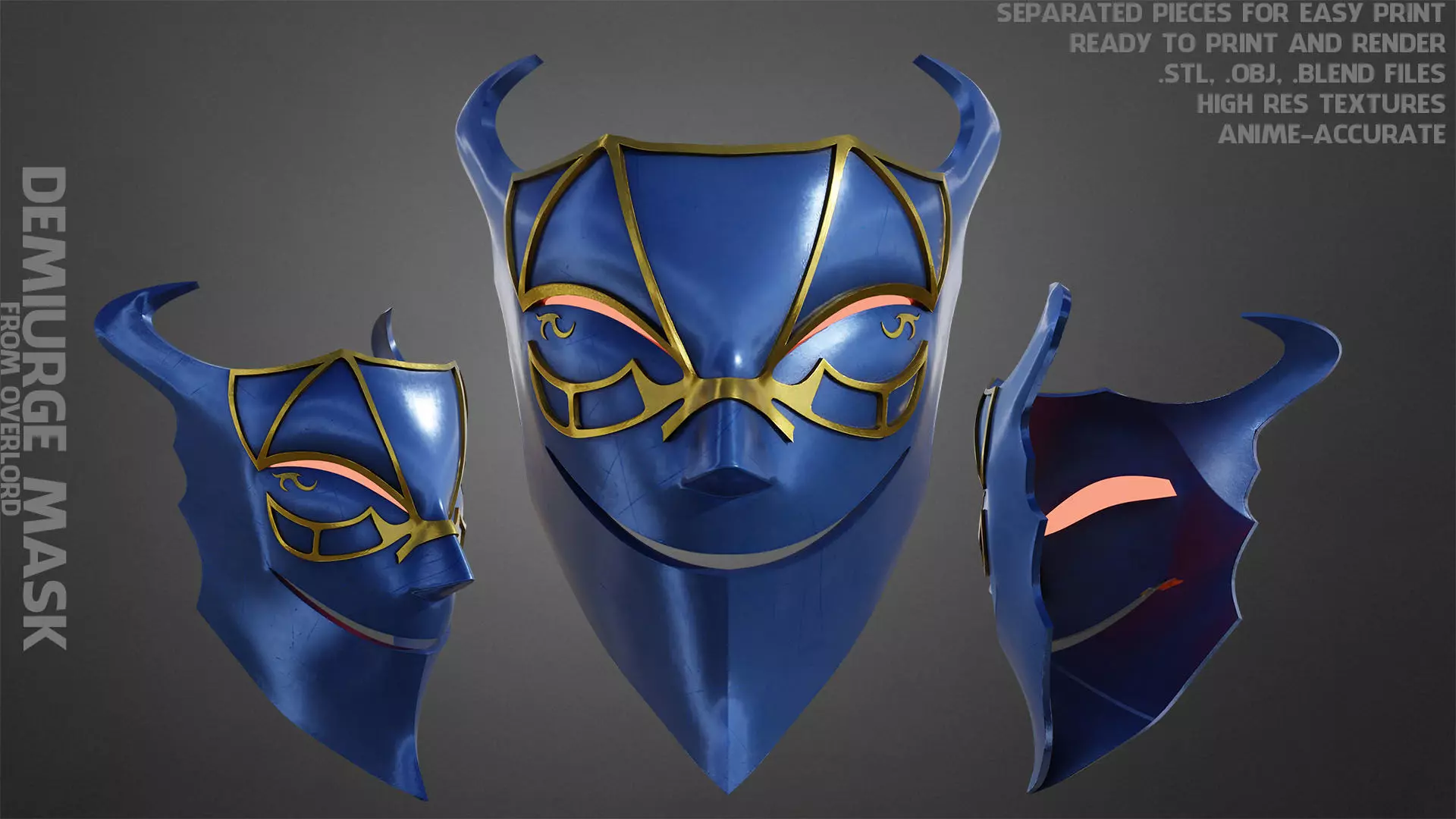 Demiurge Mask from Overlord ready to print and render with high-resolution texture (anime-accurate) real size