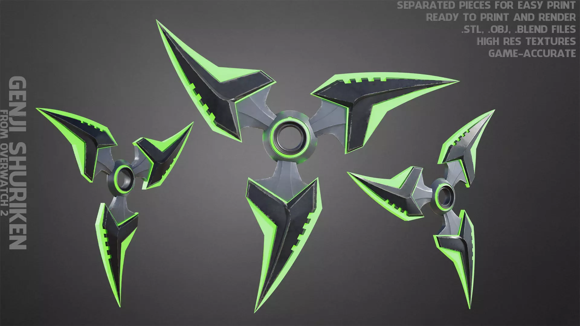 Genji Shuriken from Overwatch 2 ready to print and render with high-resolution texture (game-accurate), real size