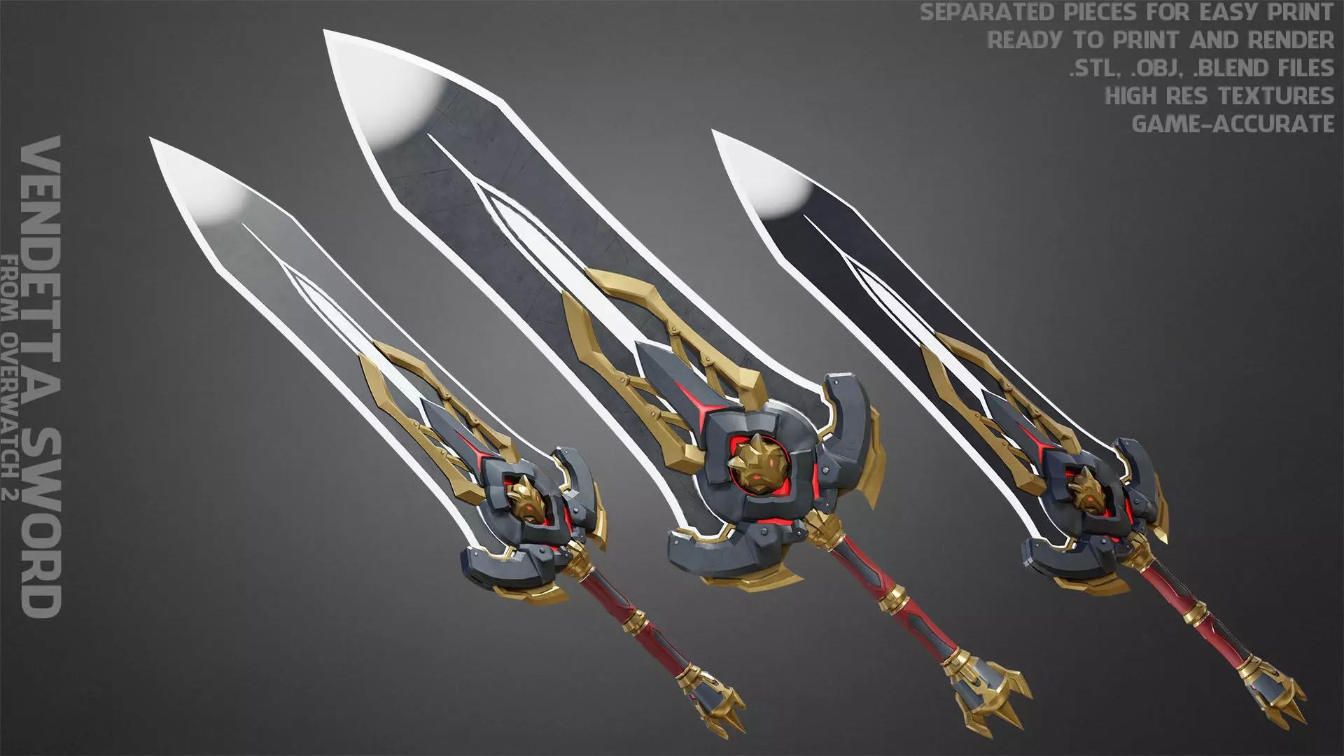 Vendetta Sword from Overwatch 2 game, ready to print and render (videogame-accurate) real size