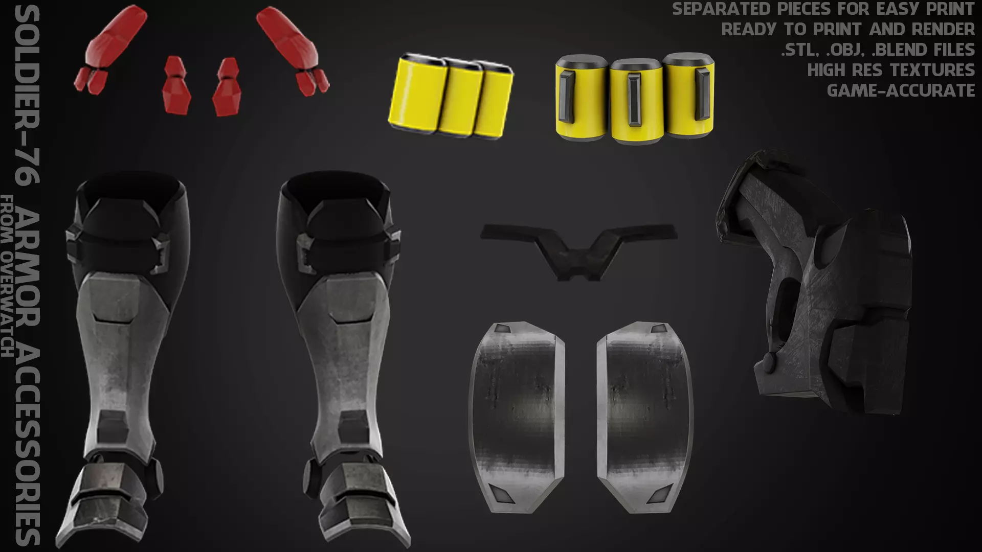 Soldier 76 Armor and Accessories from Overwatch ready to print and render (game-accurate) real size