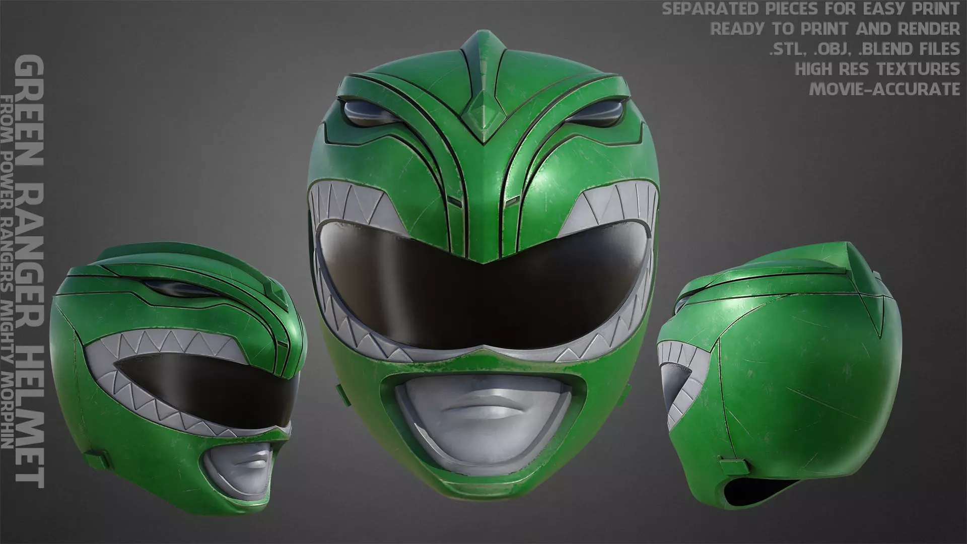 Mighty Morphin Green Ranger Helmet from Power Rangers Mighty Morphin Movie, ready to print (game-accurate), real-size