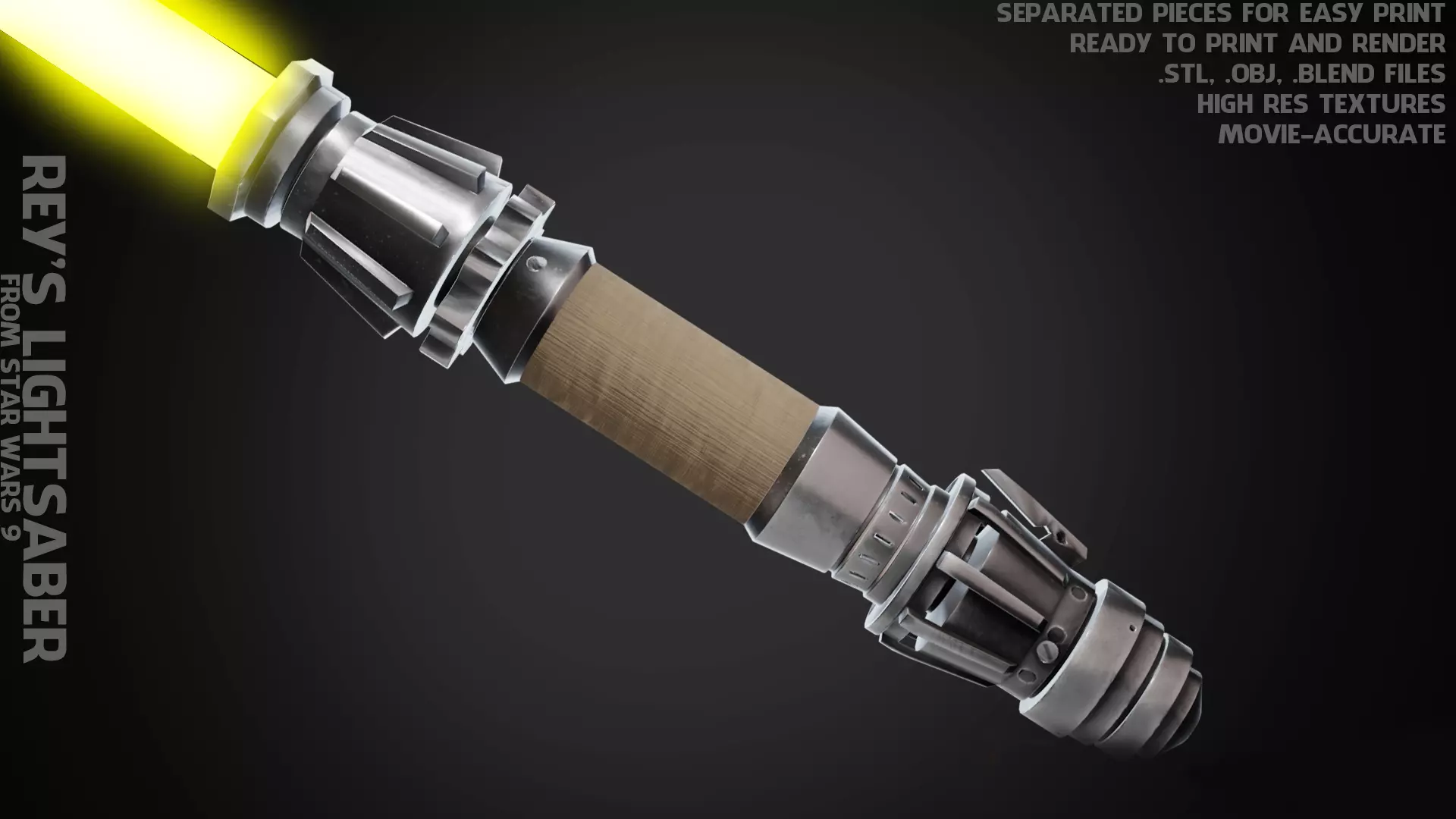 Rey'sLightSaber from Star wars - The Rise of Skywalker movie ready to print and render (movie-accurate) real-size