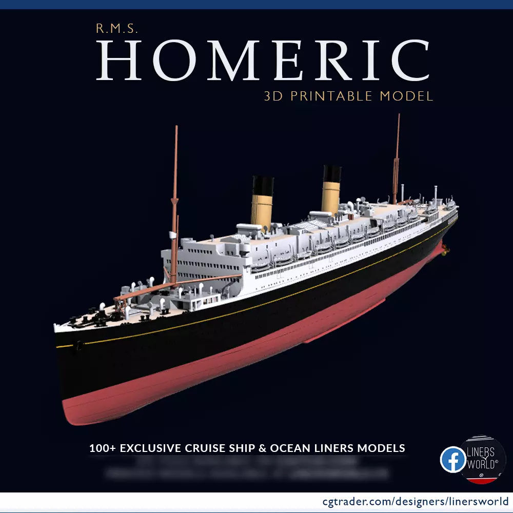 A detailed and accurate model of the RMS Homeric (ex-Columbus), an unfortunately too often overshadowed White Star liner, optimized for resin printing, in 1/1000 scale. The model is easily printable at both larger and smaller scales. Both full hull and waterline versions are included.