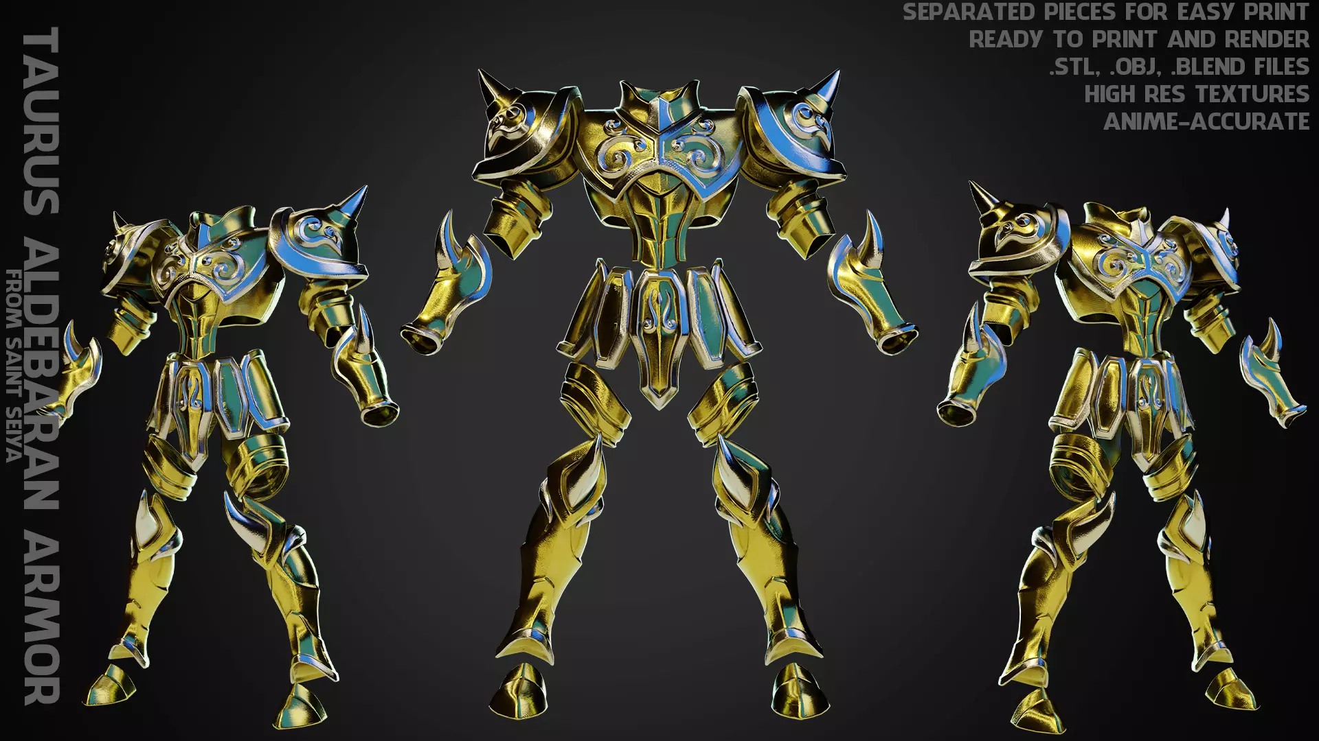 Taurus Aldebaran Armor from Saint Seiya ready to print and render with high resolution texture (videogame-accurate) real size