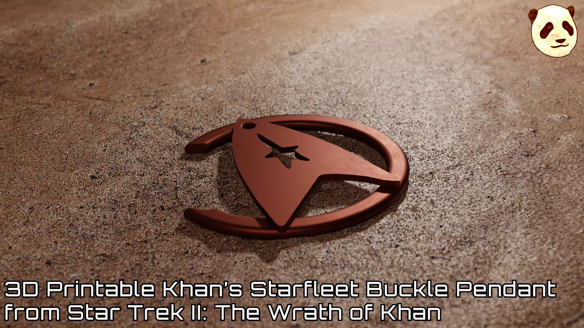 A recreation of the necklace/pendant worn by Khan Noonien Singh in the movie Star Trek II: The Wrath of Khan. In the film, it is constructed out of a damaged Starfleet belt buckle. He wears it around his neck using a loop made out of wires and other electronic components, salvaged from the SS Botany Bay, his ship, after it crashed on Ceti Alpha V. This recreation is not the exact size of the prop. The pendant is printed in two parts, the broken ring and the delta, and will require glue to assemble.