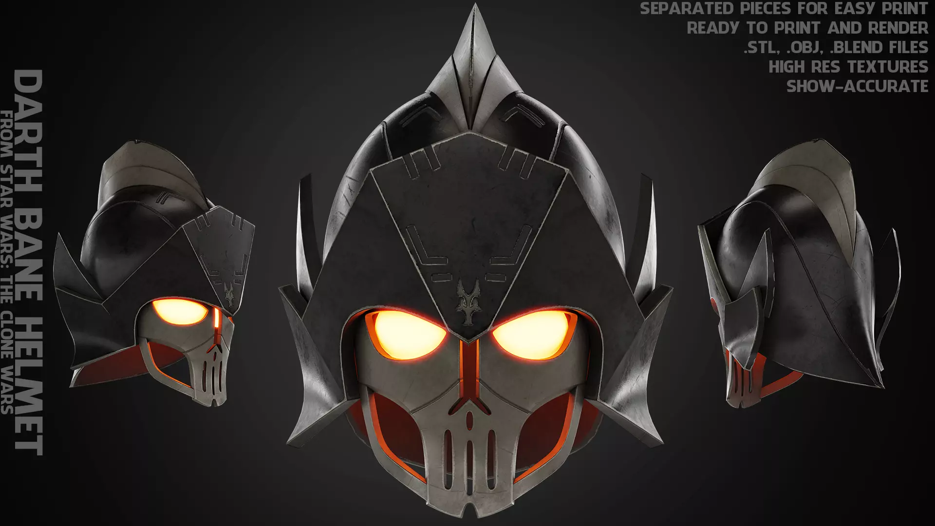 Darth Bane Helmet from Star Wars: The Clone Wars ready to print and render (game-accurate) real size