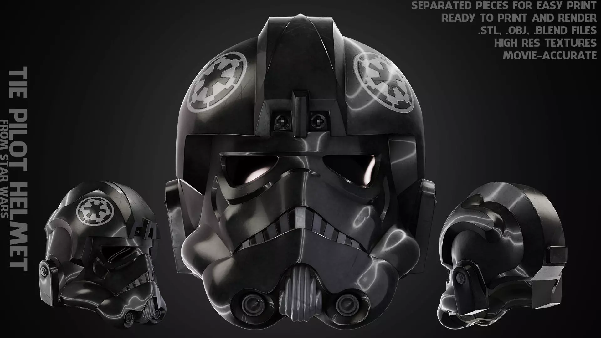 Tie Pilot Helmet from Star Wars ready to print and render real-life scale (game and comics-accurate)