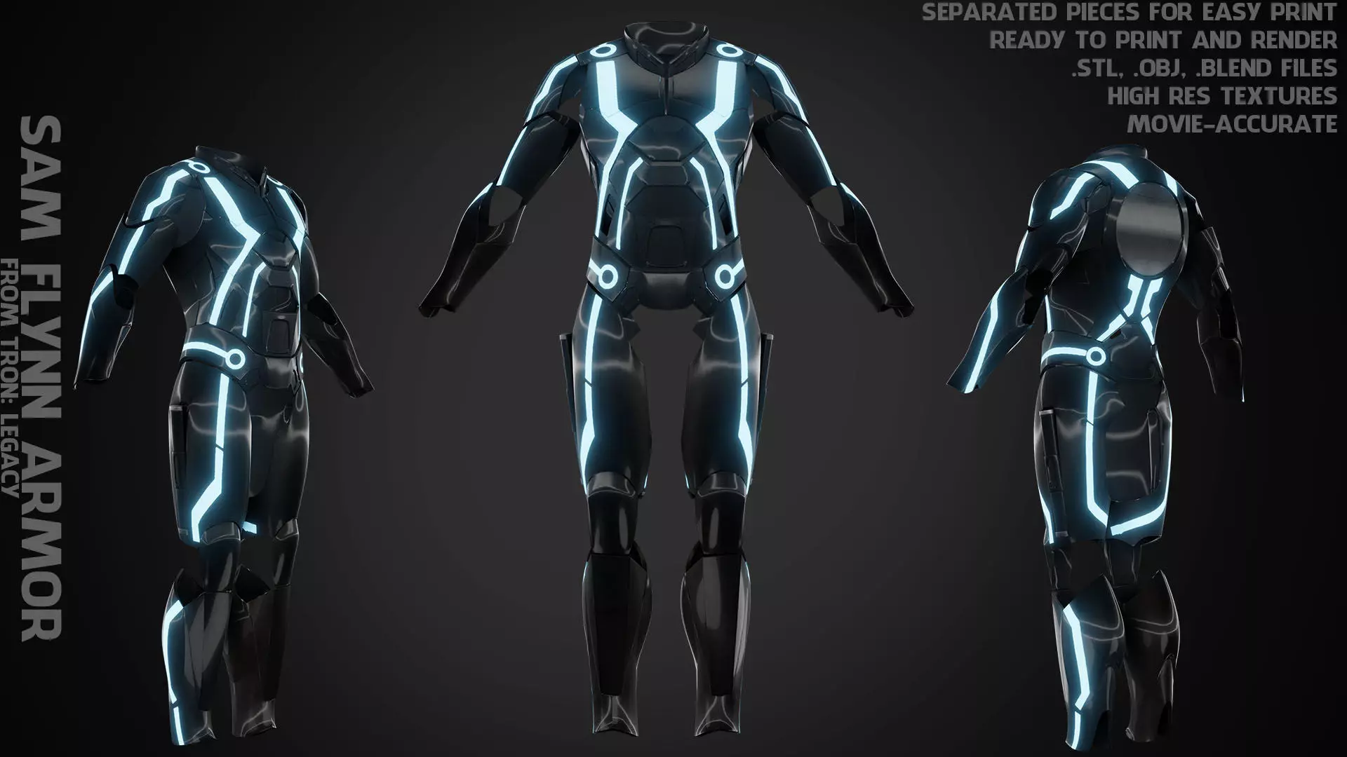 Sam Flynn Armor from Tron: Legacy ready to print and render (game-accurate) real size