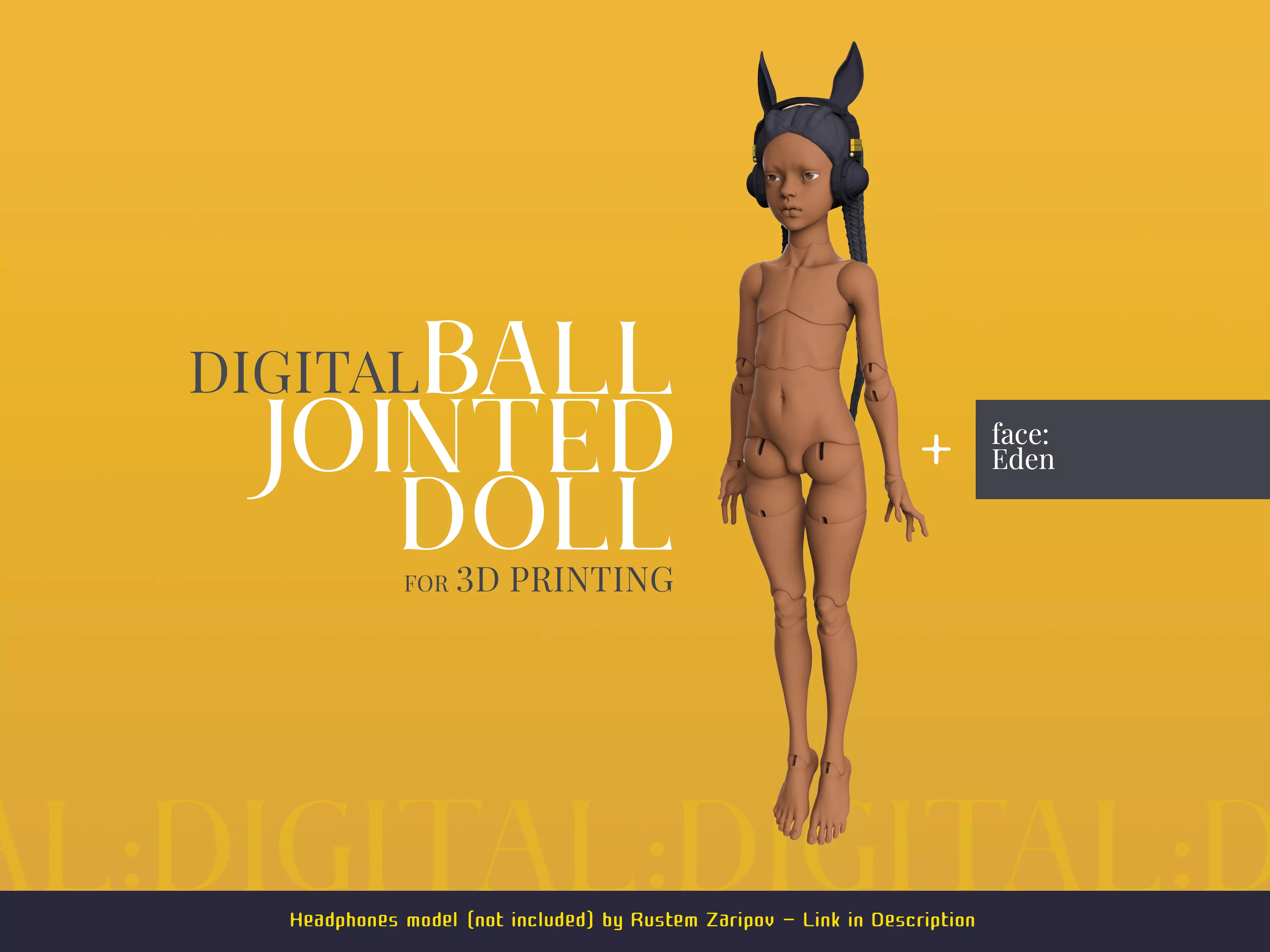 Digital ball jointed doll in .stl and .obj format for 3D printing.