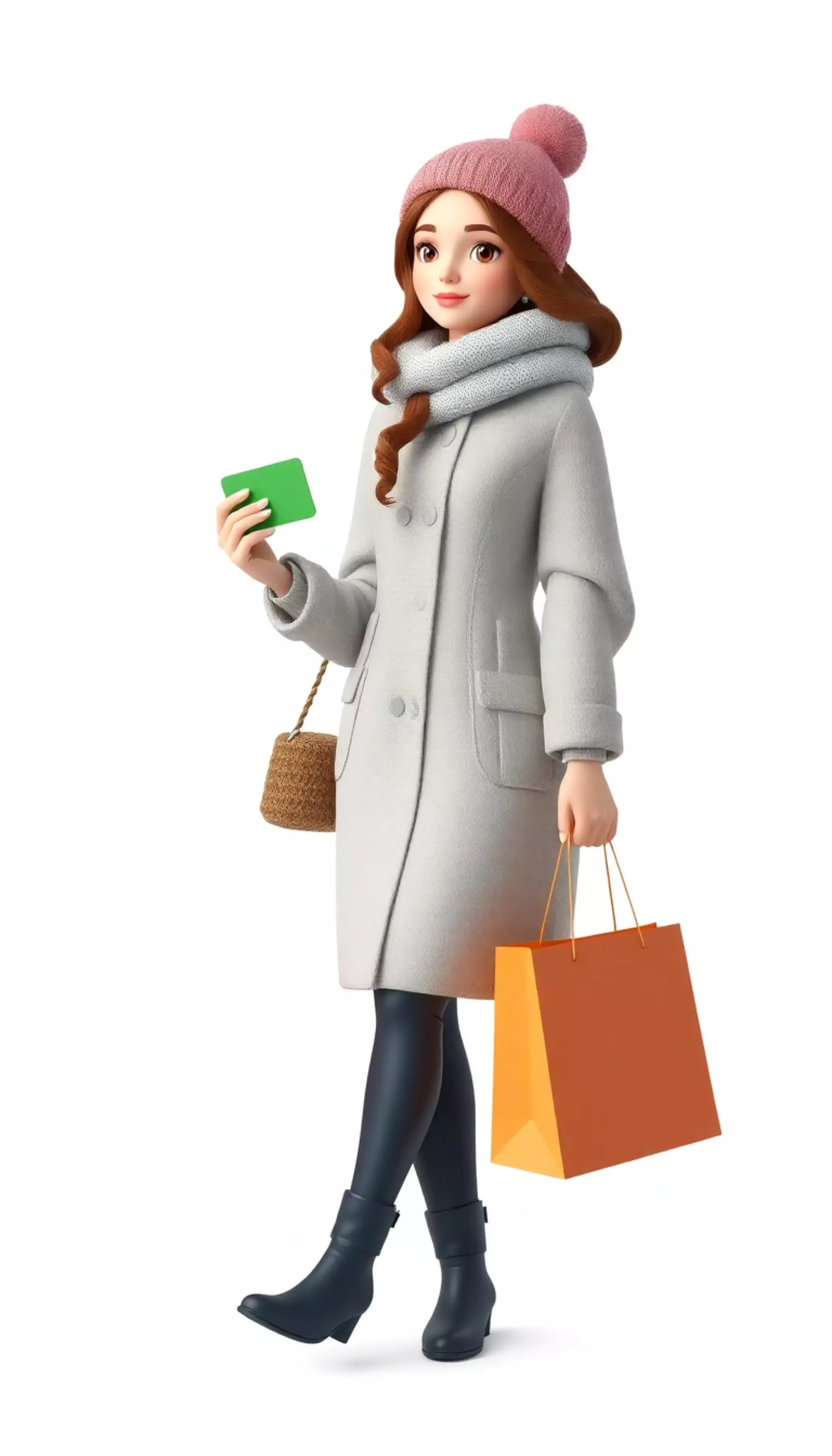 Capture the thrill of shopping season with this realistic 3D model of a woman carrying a shopping bag and credit card, designed to express the excitement and style of Black Friday sales and modern retail promotions.