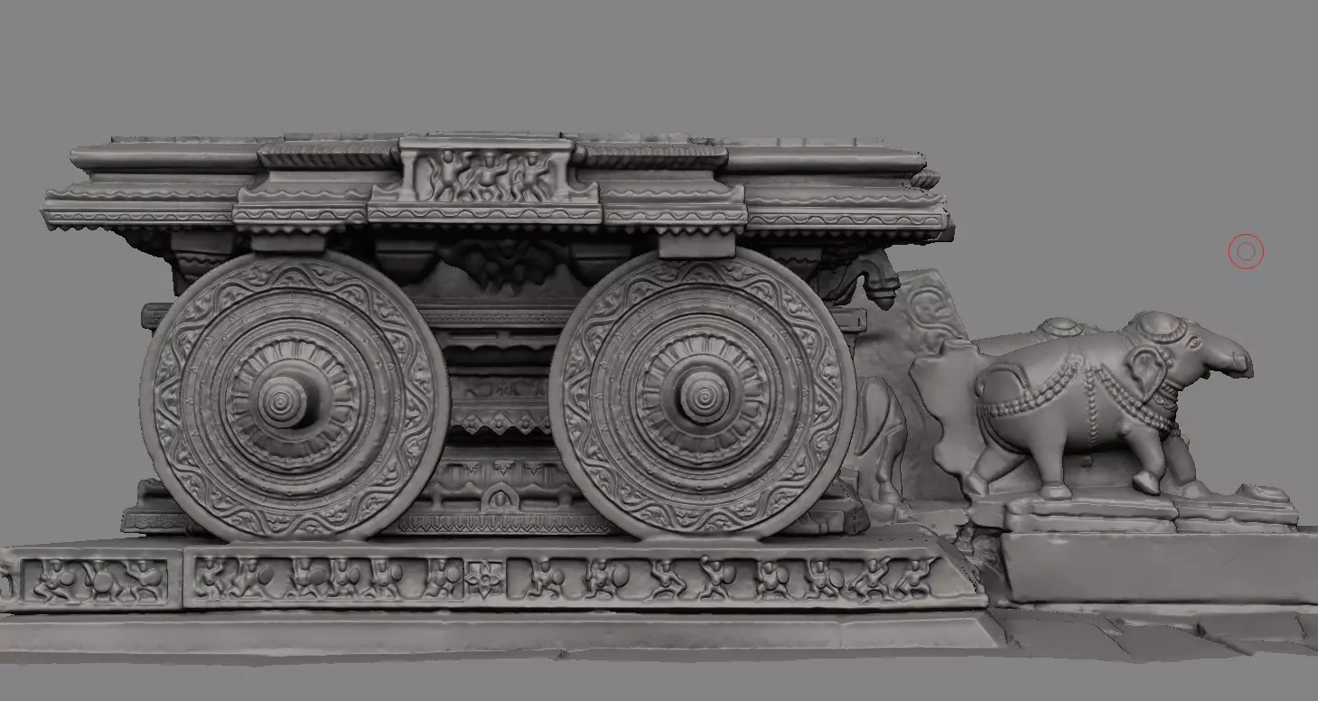 This is a 3D printed replica of the famous Stone Chariot of Hampi - digitally reconstructed from laser-scanned data using 3D modeling techniques and printed in PLA, a kind of bio-degradable plastic, using additive manufacturing. This process leaves little scope for artistic deviation from the original artifact. This replica is possibly the only true scale version of the existing Chariot with its top reconstructed as it may have been originally. The Stone Chariot is located inside the Vijaya Vittala temple at Hampi in Karnataka, a UNSECO World heritage site in India. Lord Vittala is an avatar of Indian god Vishnu, and this chariot is a shrine of Lord Garuda (a mythological figure with a human body and head of a large, legendary bird), who is the ‘Vahana’ or vehicle of Lord Vishnu. The temple was built in the 15th century AD and was enhanced by successive kings of the famous Vijayanagara dynasty of South India. The temple complex is now in ruins but the Stone Chariot near its east entrance, is mostly intact, resplendent in its architectural beauty. The top part of the chariot, however, has degraded overtime, and is missing. The package here includes two detachable tops - the current state top and the conjectural top. The height of the Stone chariot (with broken top part) is approximately 17 feet and it has been scaled down by 1:50 to this model which is about 4 inches in height with the current state top and 6 inches with conjectural top.