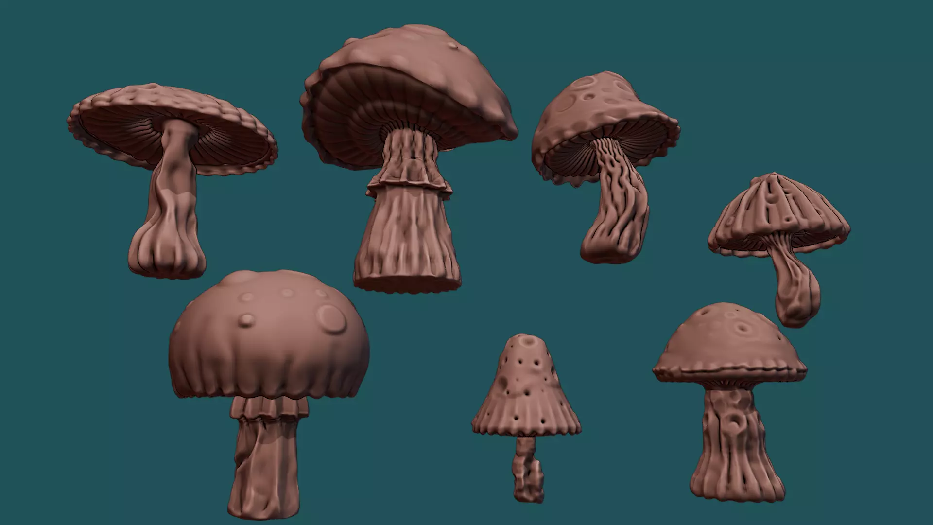 This is a comprehensive collection of 7 unique, high-detail mushroom 3D models, designed for a wide range of professional and creative projects. Each mushroom has been meticulously sculpted to capture unique organic details, making this pack an excellent resource for any artist or developer.