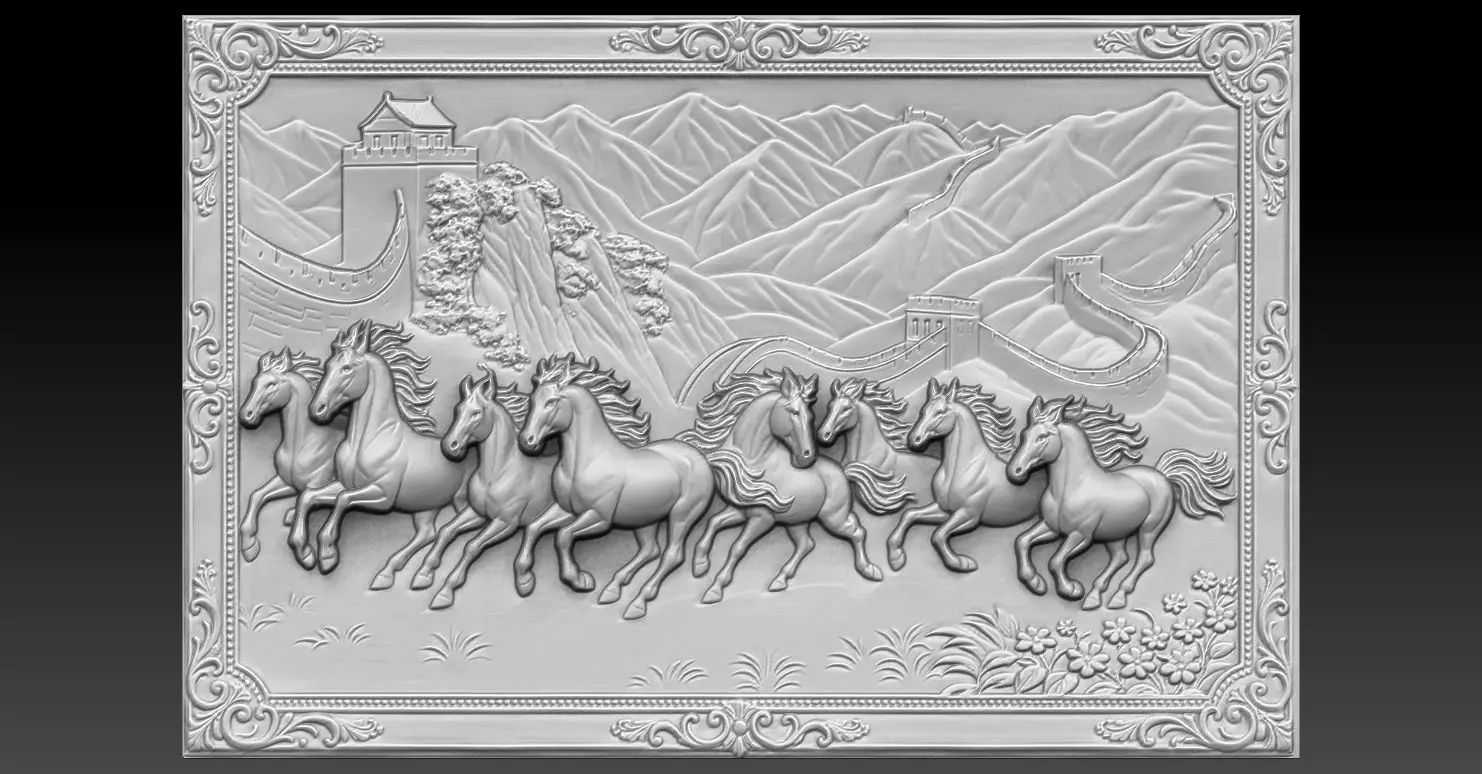 8 horses CNC Relief Model 3D print model