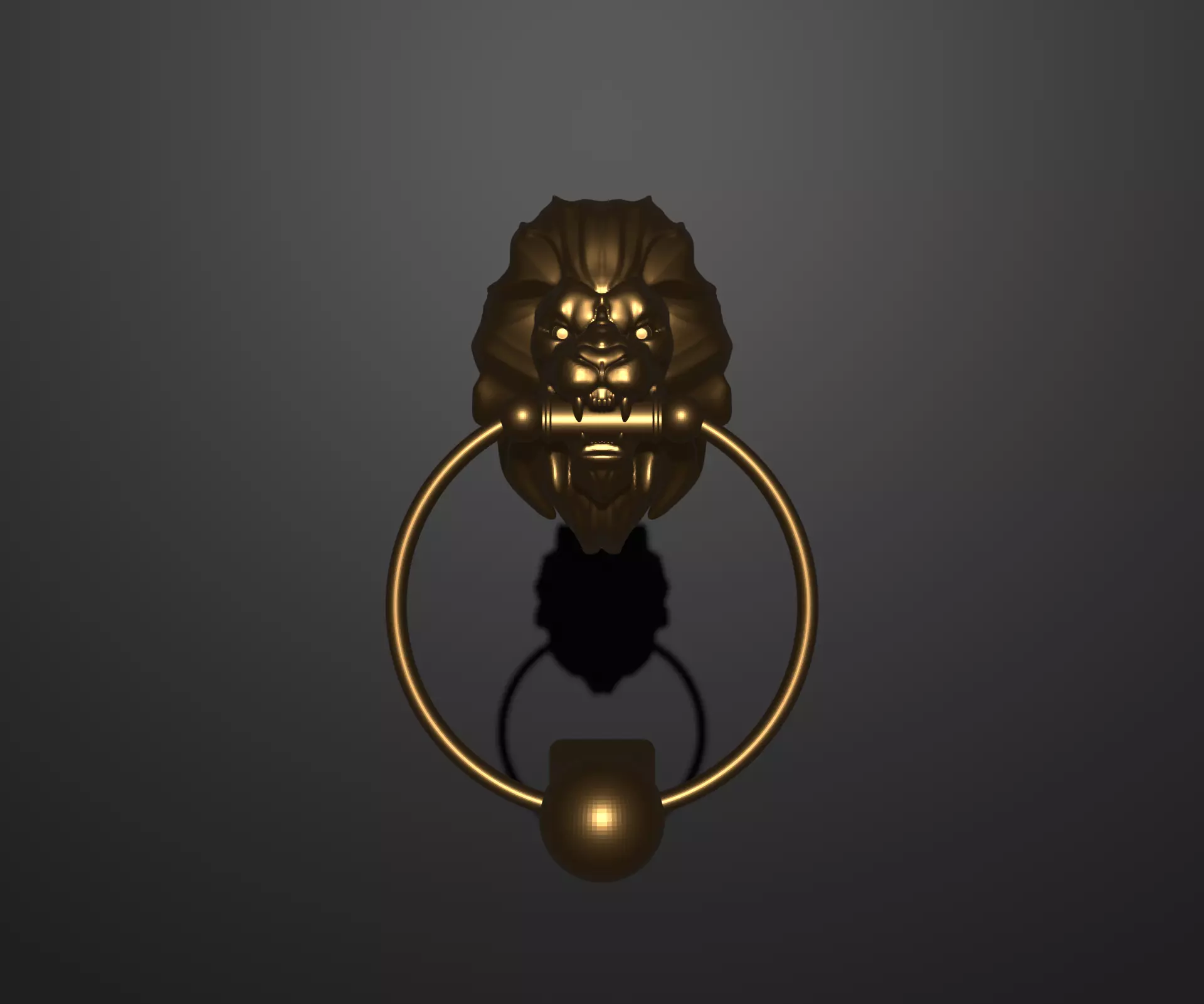The door knocker consists of two parts: the lion's head sculpture and the knocker itself. This simplifies 3D printing and assembly. Both parts of the model are available in STL and Blender formats.