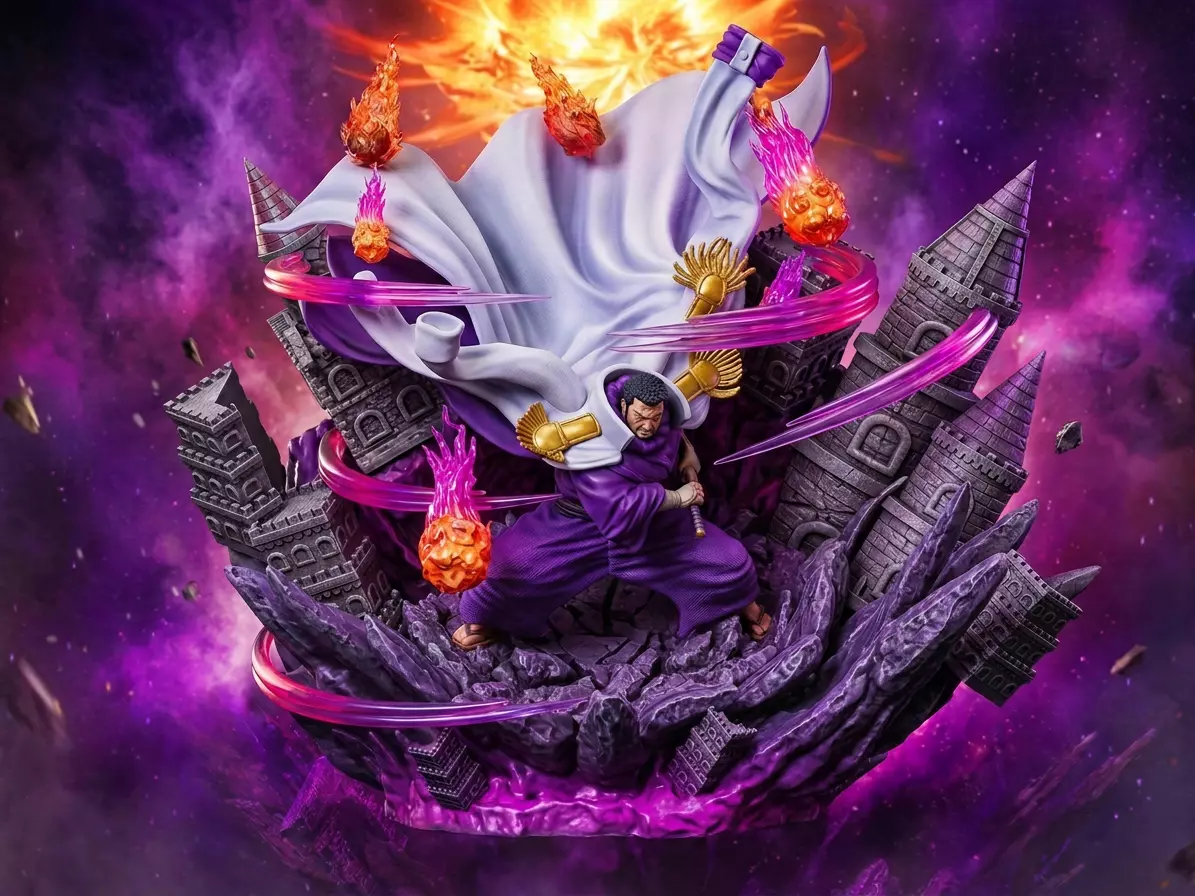 Insane Level of Detail: From the realistic folds of his Marine coat and the fierce expression of the Purple Tiger, to the intricate textures of the shattered castle and cracked earth, the sculpting is top-notch. (Swipe to see the grey renders!).