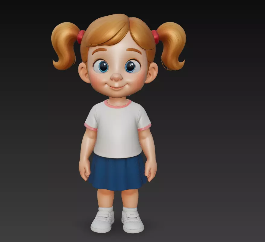 The Adorable Girl – Stylized Child Character 3D Model radiates innocence, joy, and the playful curiosity of childhood. With her big bright eyes, twin ponytails, and a gentle smile, this model brings warmth and sweetness to any 3D scene.