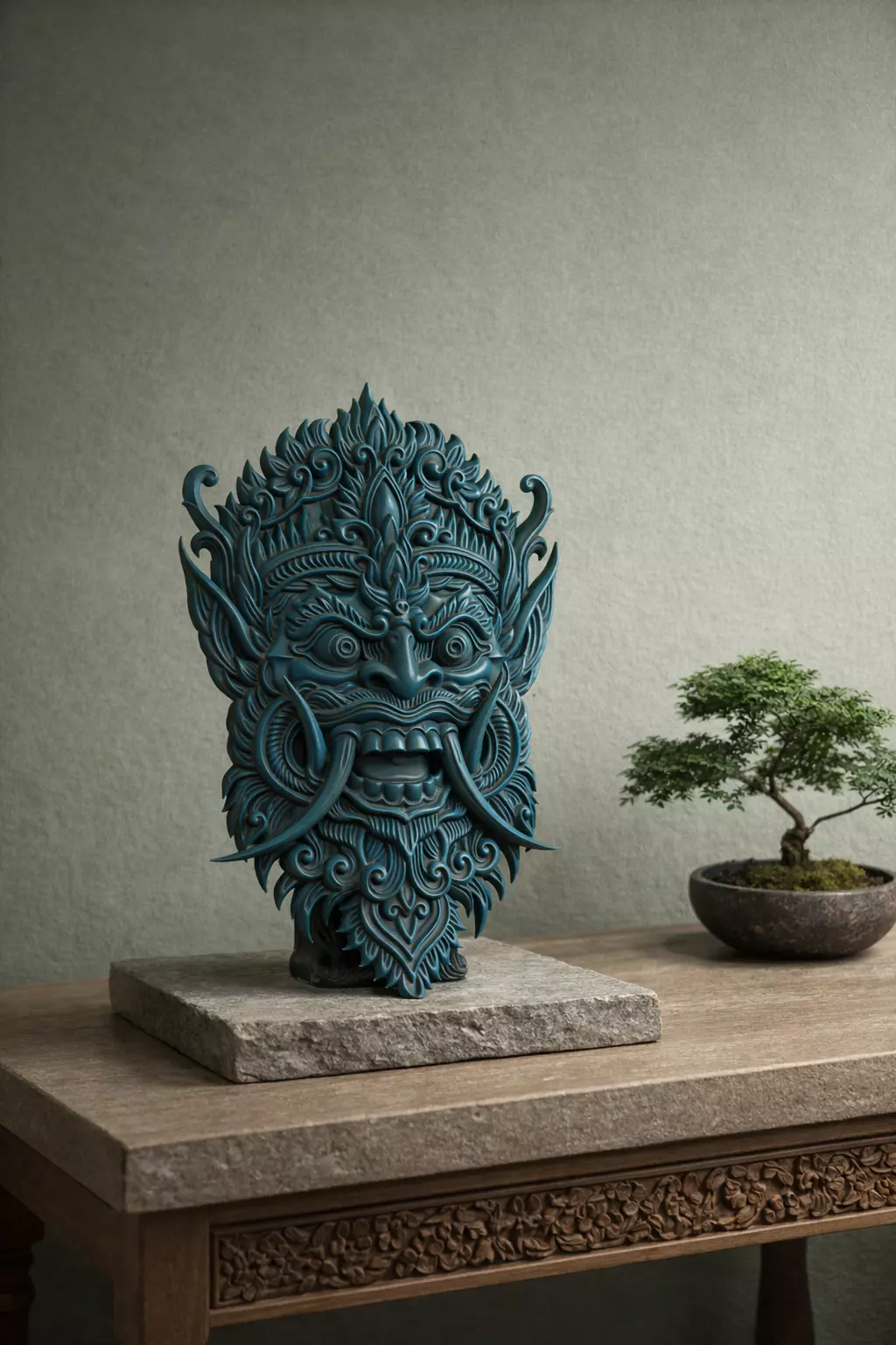 Luxury living room or entry console decorHeritage / temple-inspired interiorsHotel lobby or reception displayGallery-style interior stylingArchitectural visualization & concept art