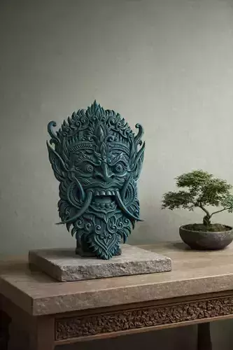 Highly detailed mythic guardian mask sculptureOrnamental, symmetrical, and architecturally balanced designIdeal for tabletop decor, wall accent, or relief carvingSuitable for CNC stone carving, marble, sandstone, bronze, or resinClean, non-copyrighted, fantasy-based designProfessional-quality sculpting with strong depth and definition