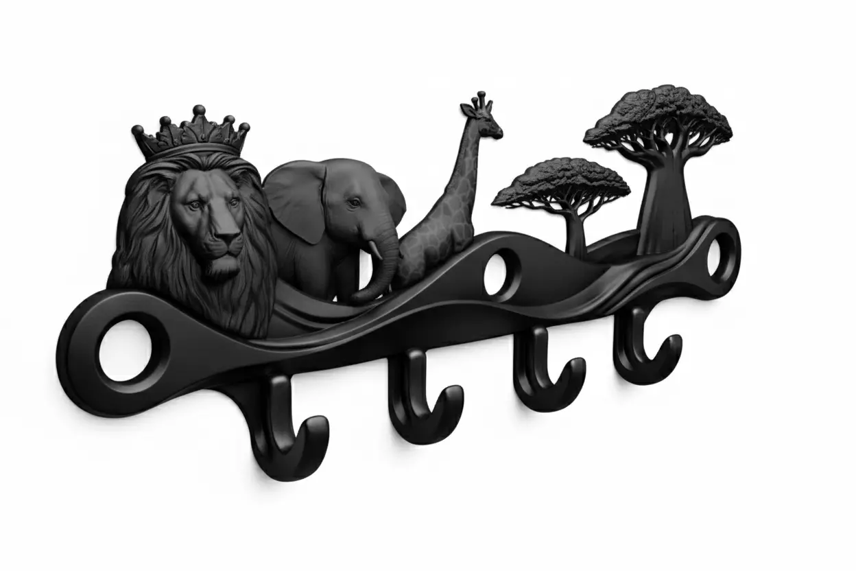 This detailed 3D model features iconic African animals including lion elephant and giraffe combined with an elegant acacia tree design transformed into functional wall hooks for home decorationThe concept represents African wildlife nature and safari culture making it ideal for interior decor ethnic themed spaces and creative wall storageThe model is designed using AI assisted 3D modeling techniques to ensure smooth geometry balanced proportions and professional qualityIt is suitable for visualization interior projects animation and decorative utility productsThe model can be easily resized and adjusted and is fully supported for 3D printing after scaling to the desired dimensionsIncluded file formats are STL GLB FBX USDZ MP4 OBJ PNG GIF JPG providing wide compatibility for CGTrader AR presentation rendering animation and physical printing workflowsAI optimized topology ensures clean structure durability and print ready performance