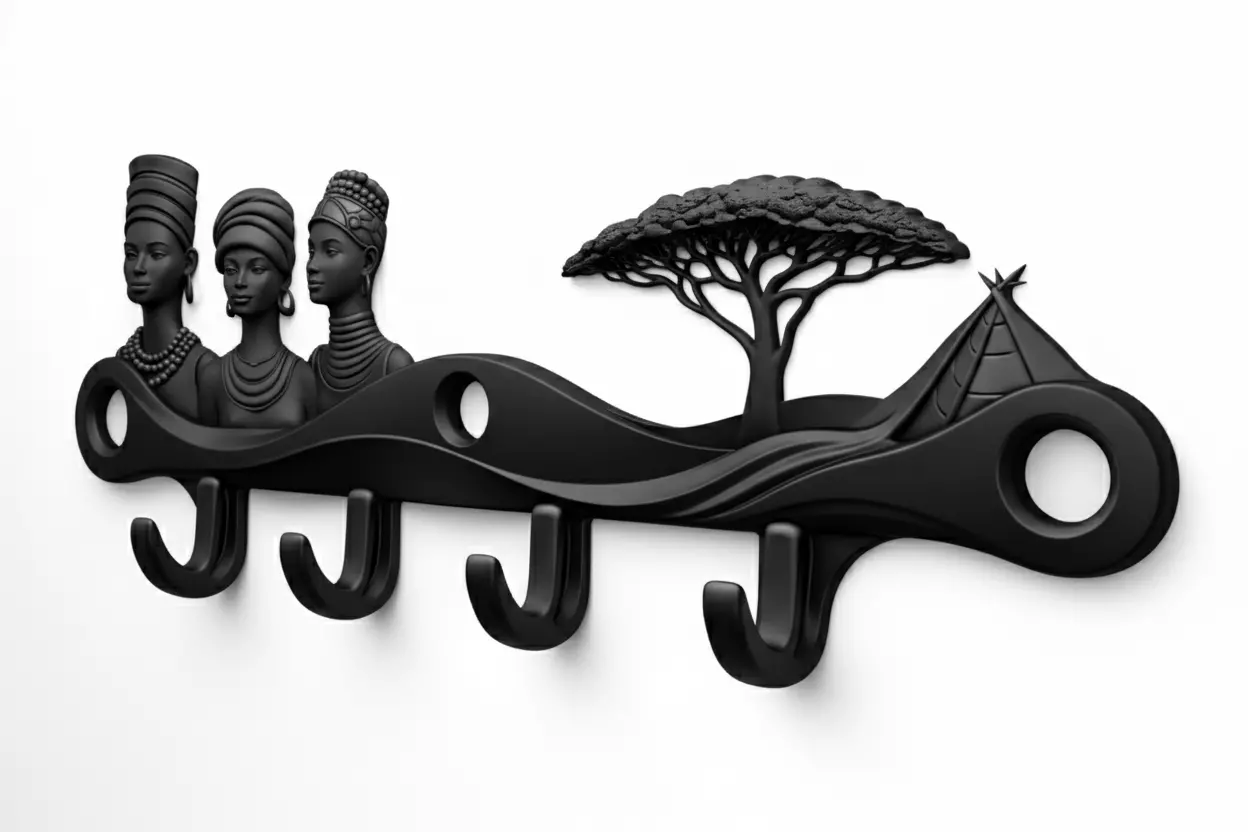 This premium 3D model presents African cultural women combined with an iconic acacia tree and traditional African tent inspired hooks designed for home decorationThe concept reflects African heritage lifestyle and ethnic art making it ideal for wall hooks interior decor cultural projects and creative storage solutionsThe model is created with the help of advanced AI assisted 3D design techniques ensuring clean topology smooth surfaces and high visual qualityIt is suitable for decorative use digital visualization and functional hook applications in modern and cultural interiorsThe model supports easy size adjustment and is fully suitable for 3D printing after scaling according to user requirementsIncluded file formats are STL GLB FBX USDZ MP4 OBJ PNG GIF JPG ensuring compatibility with CGTrader workflows AR presentations animations and physical printingAI optimized modeling guarantees a print ready structure detailed craftsmanship and professional quality results