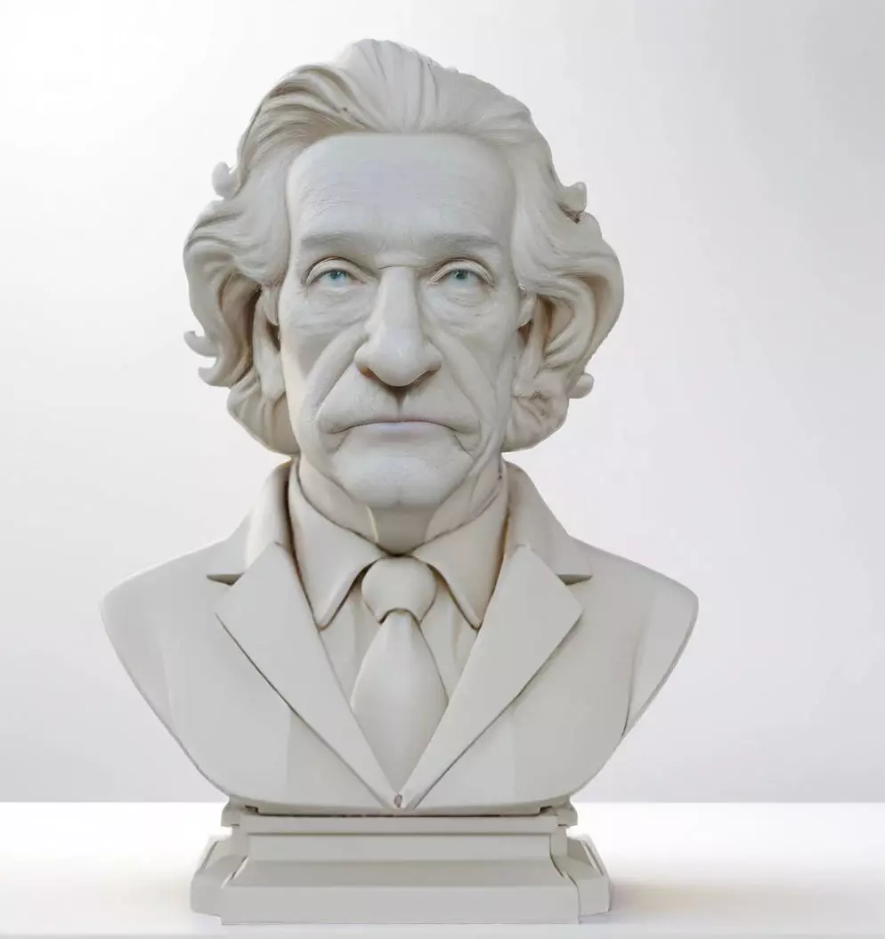 A detailed bust of Albert Einstein, featuring his iconic wild hair, expressive face, thoughtful gaze, and characteristic mustache. Designed to be a dignified and realistic homage, capturing age‑lines and texture. Watertight and ready for 3D printing, perfect for science lovers, educational displays, or collectors.