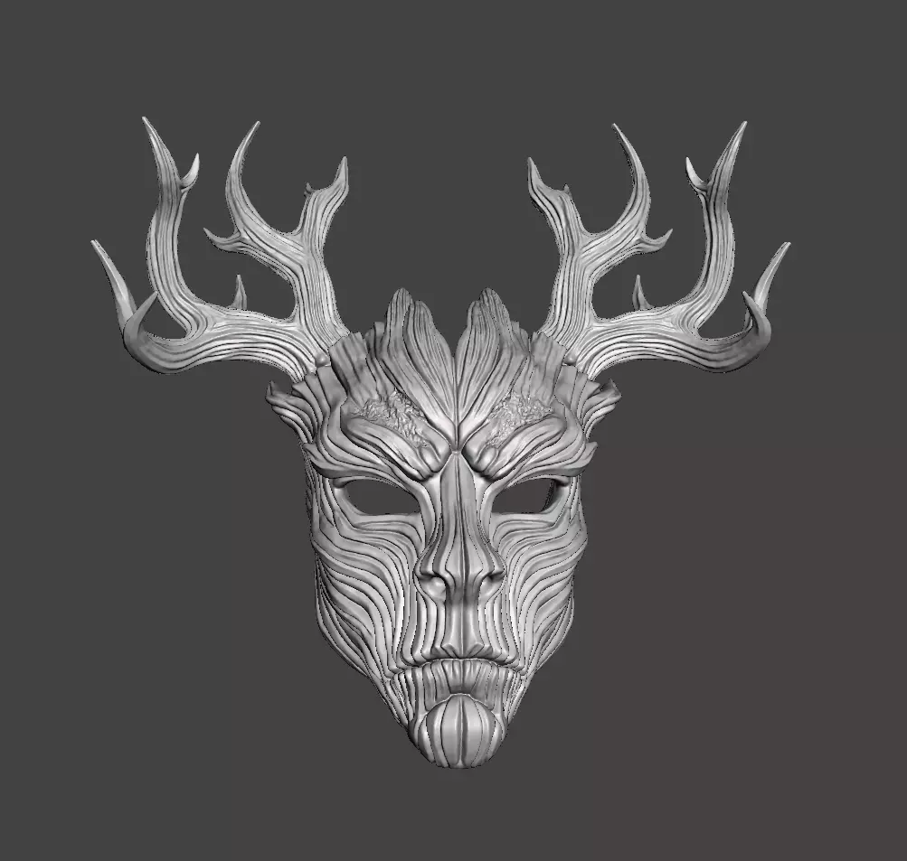 This Ancient Forest Spirit Mask is a master-class in organic digital sculpting. Every grain of wood, every crack in the bark, and the structural flow of the antlers have been engineered for visual dominance.