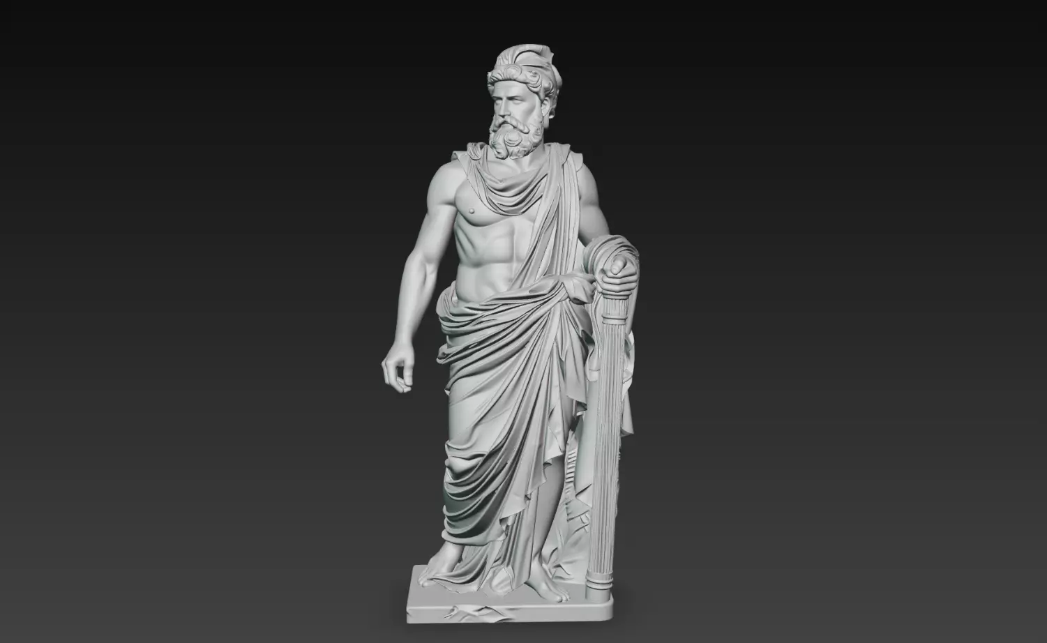 Ancient Greek Warrior Statue is a premium high-detail 3D model inspired by classical antiquity sculptures. Featuring a strong male figure with draped cloth and a support column, this model reflects timeless Greek artistic style.