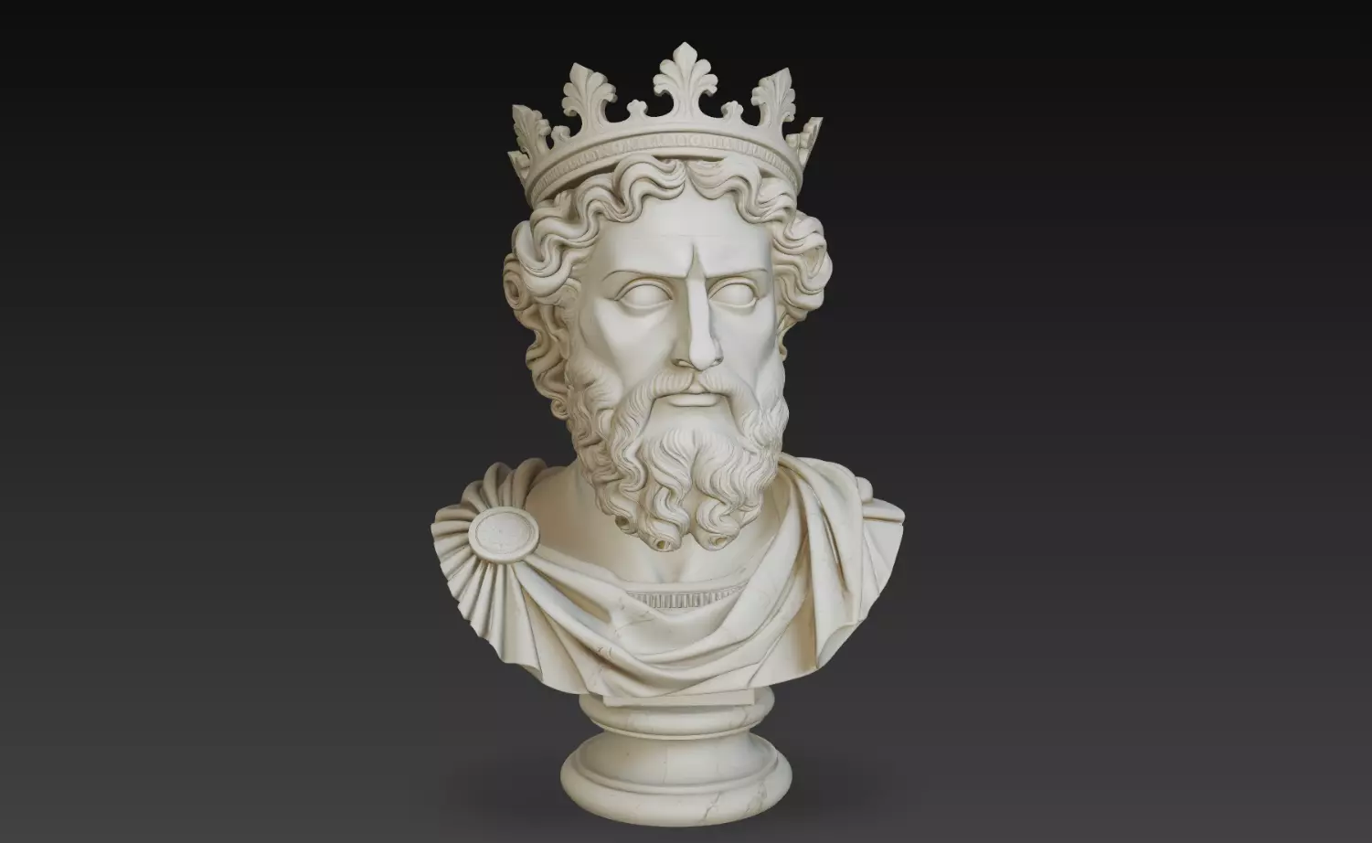 Ancient King Crown Bust Sculpture is a premium high-detail 3D model inspired by classical rulers and royal figures. Featuring a crowned male bust with strong facial structure and stylized beard, this model delivers a powerful and authoritative presence.