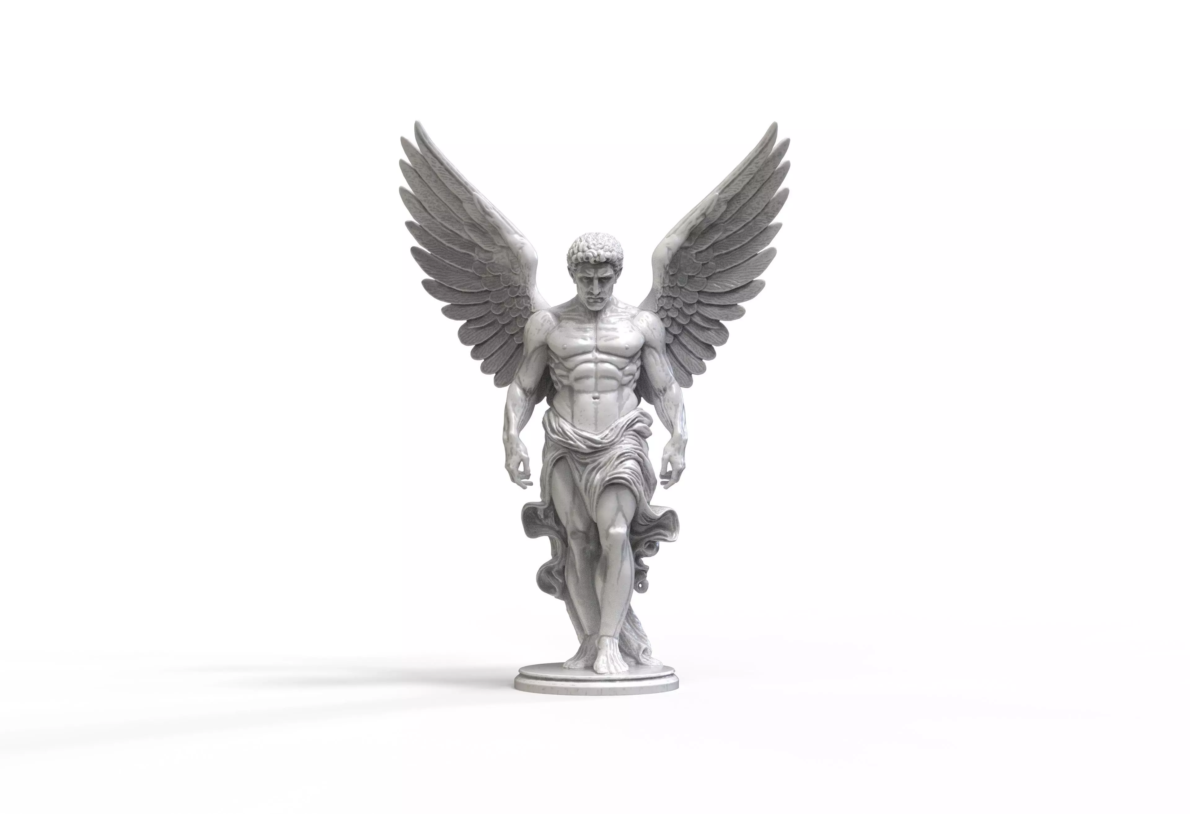 This is a high-detail male angel / archangel statue, sculpted in ZBrush with clean anatomy, realistic wings, and dynamic drapery. The model is fully optimized for 3D printing, collectibles, miniatures, resin printing, CNC, SLA, FDM, and digital rendering.