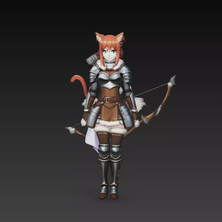 This Anime Cat Girl Archer 3D Model is a stylized fantasy character designed with a blend of anime aesthetics and medieval-inspired armor.