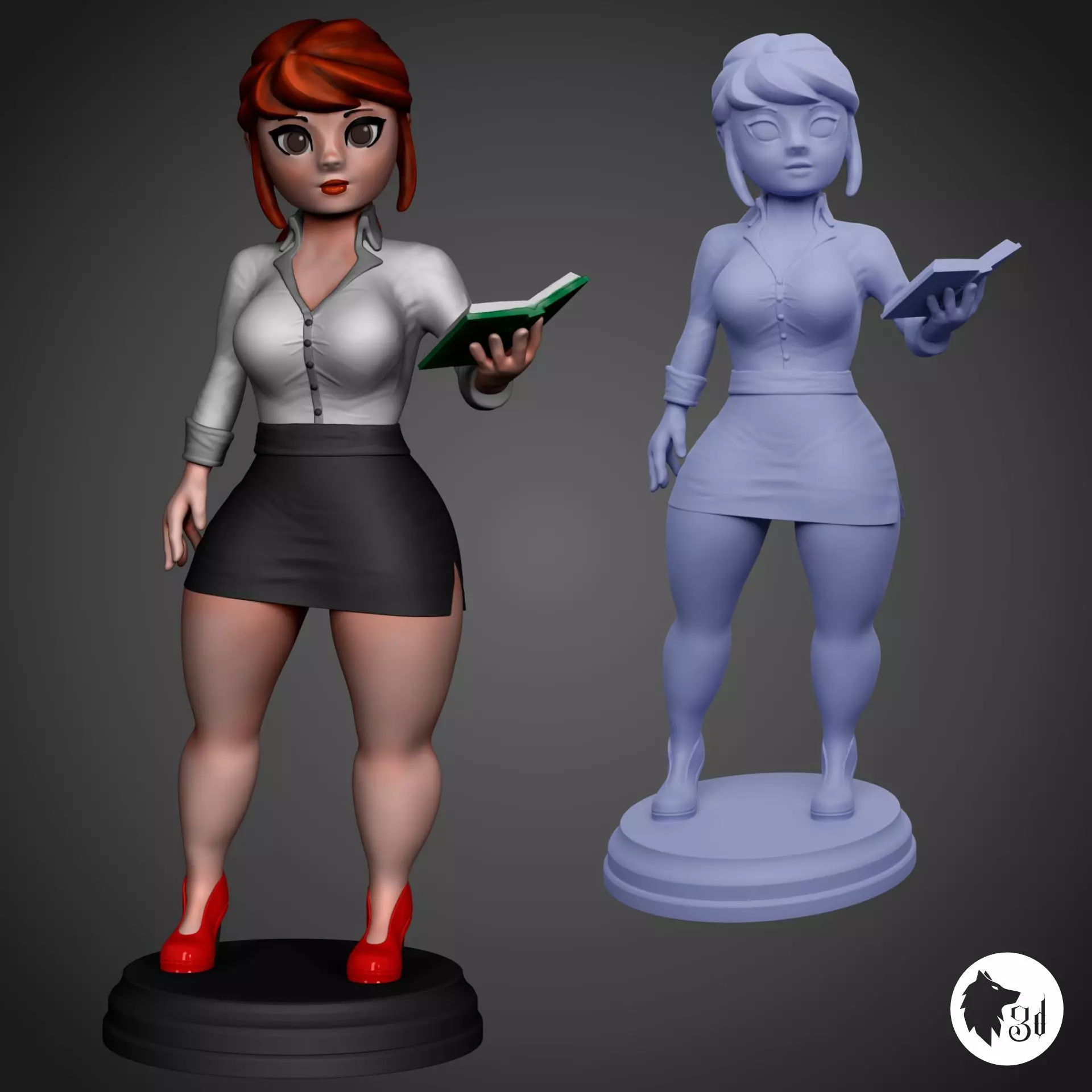 Character based on cartoons and anime, with a sexier style inspired by a teacher or librarian.