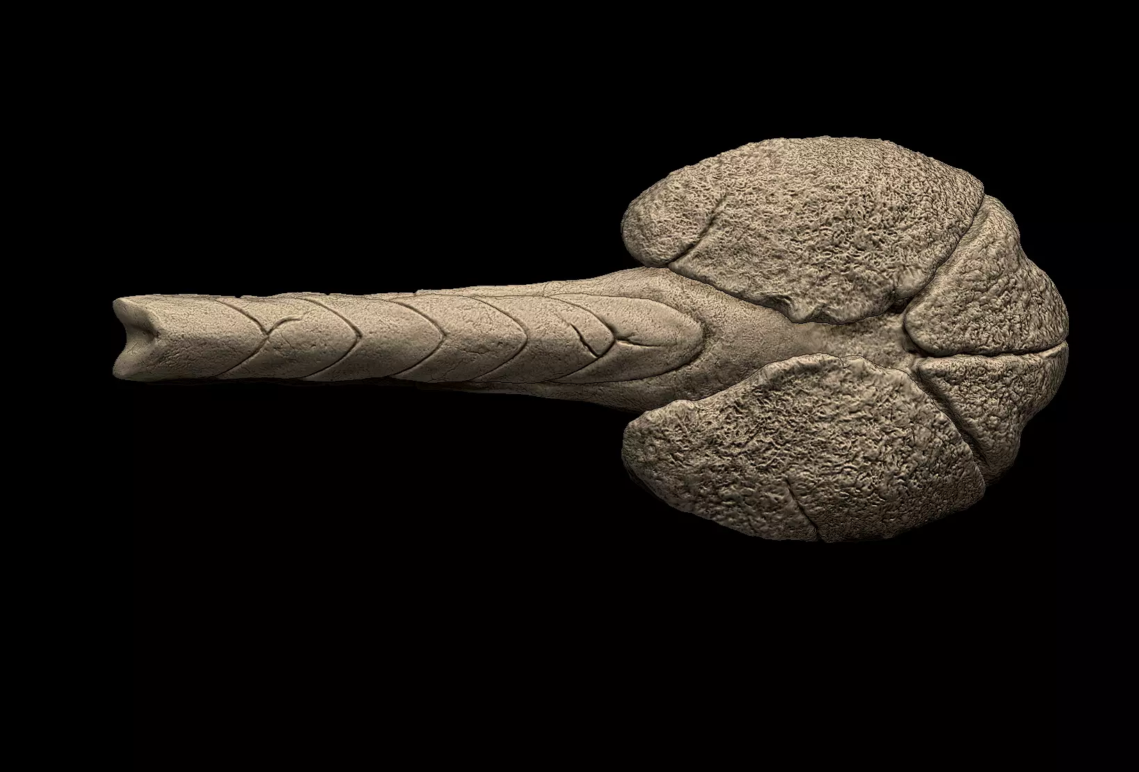This is a life size 3d digital model tail of Ankylosaurus. OBJ, ZTL, PLY, FBX and STL files. jaw is seperated.