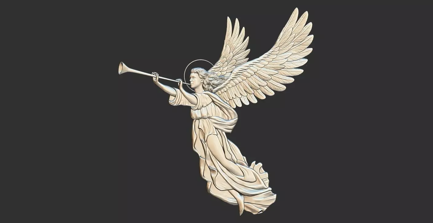 Archangel Gabriel Sounding the Trumpet Horn 3D Relief Stl Model for 3D Printing and CNC Carving