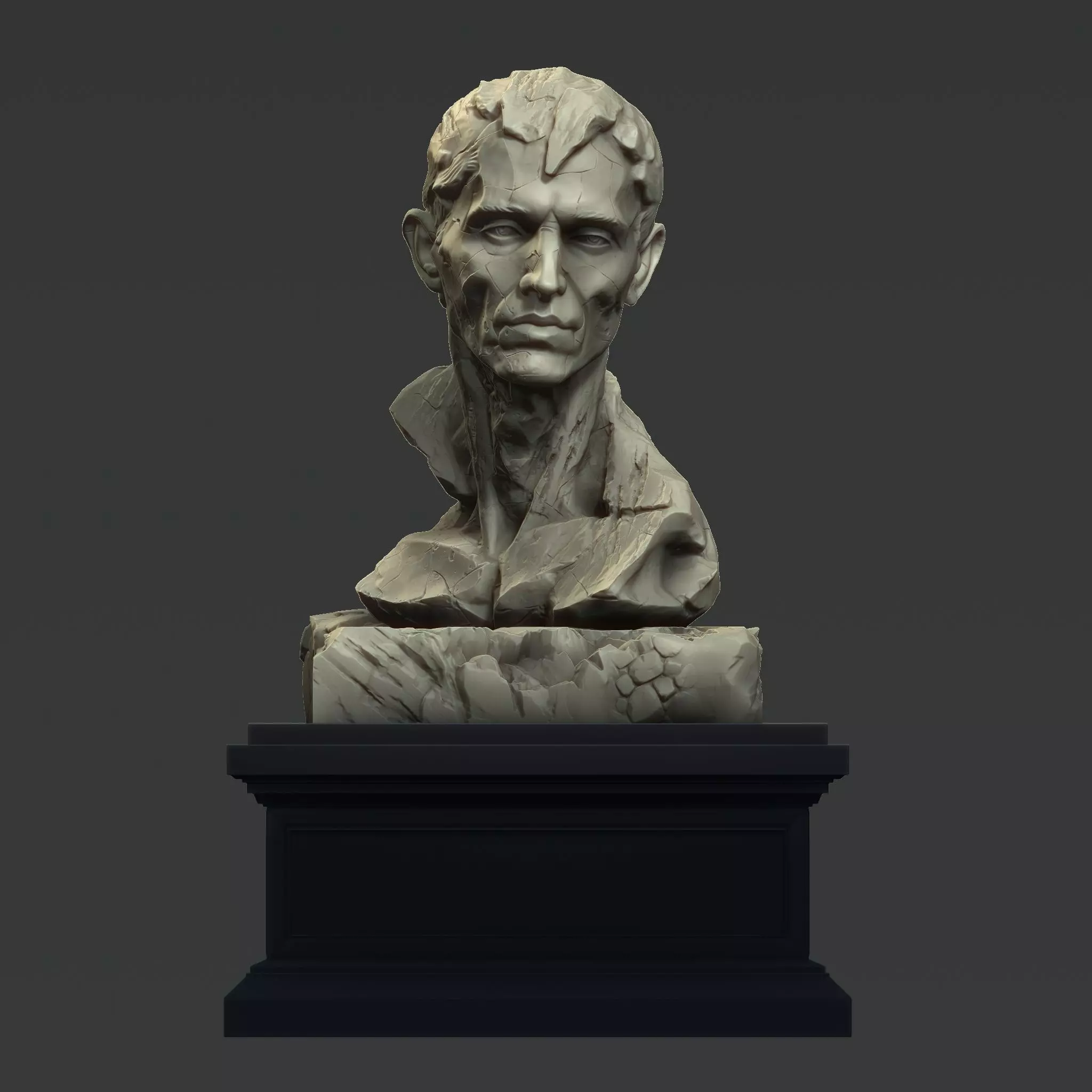 Classical Roman-inspired portrait bustIntentional fragmented / ruined marble styleHigh-detail sculptural formClean geometry suitable for productionMuseum-style aesthetic