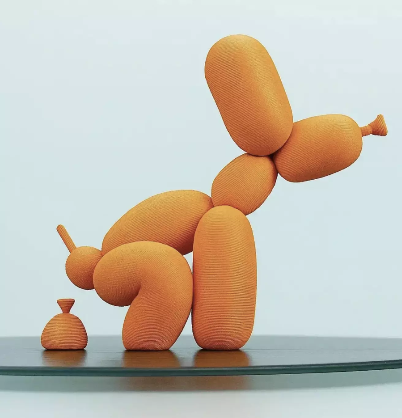Modern and quirky decoration featuring a balloon dog taking a poop. An original and irreverent piece, perfect for those who enjoy art with humor and a bizarre twist. Adds personality to any space and is sure to spark a smile (or two).