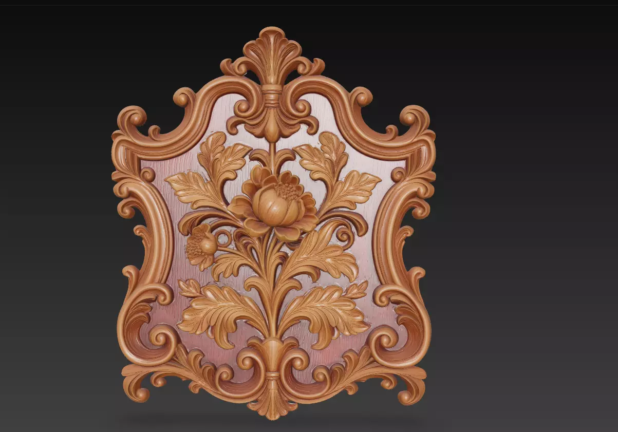 Every swirl, petal, and leaf has been carefully modeled to achieve visual harmony and dimensional depth. The design merges balance and richness, making it ideal for CNC carving, 3D printing, or CGI visualization in furniture, wall décor, or architectural ornament projects.
