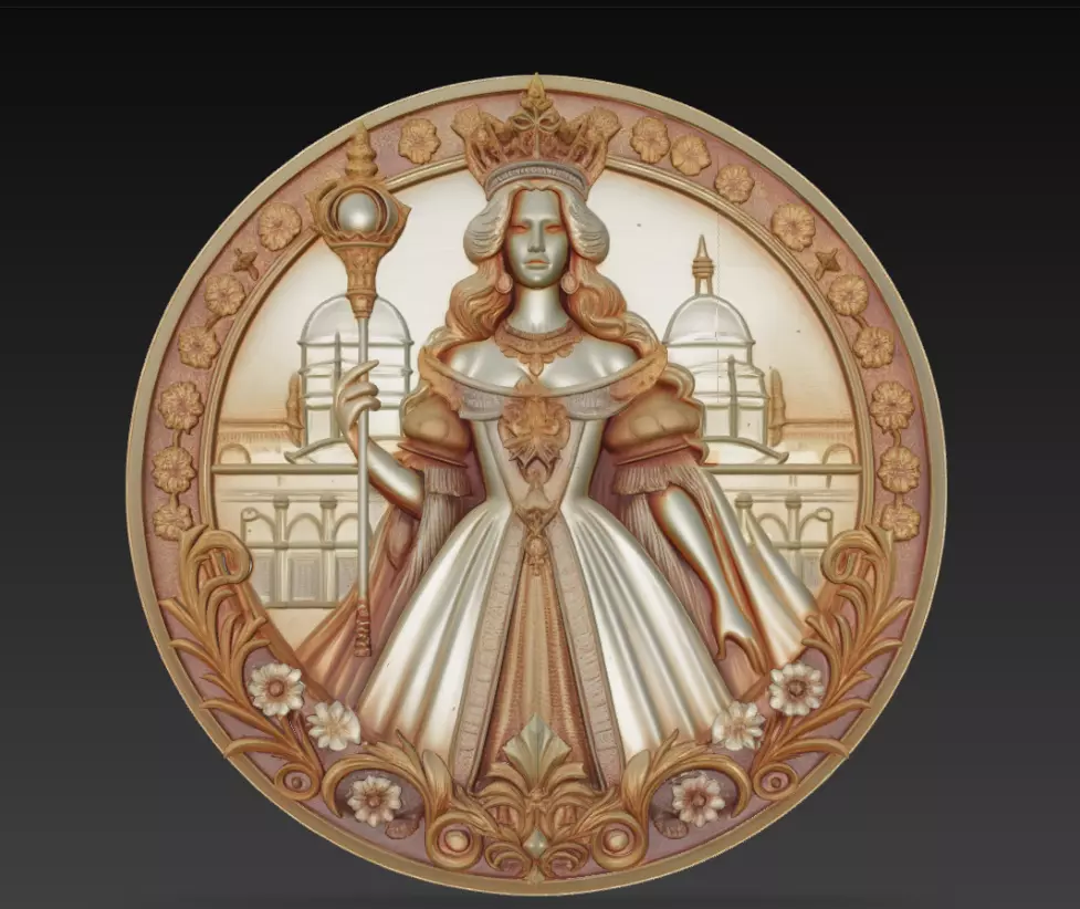 Bring regal beauty to your collection with this Baroque Queen Relief 3D Model, an elegant depiction of a royal figure surrounded by floral ornaments and palace architecture.The model showcases the grandeur of classical European design — intricate dress folds, ornamental crown, and detailed scepter craftsmanship — symbolizing power, grace, and timeless artistry.