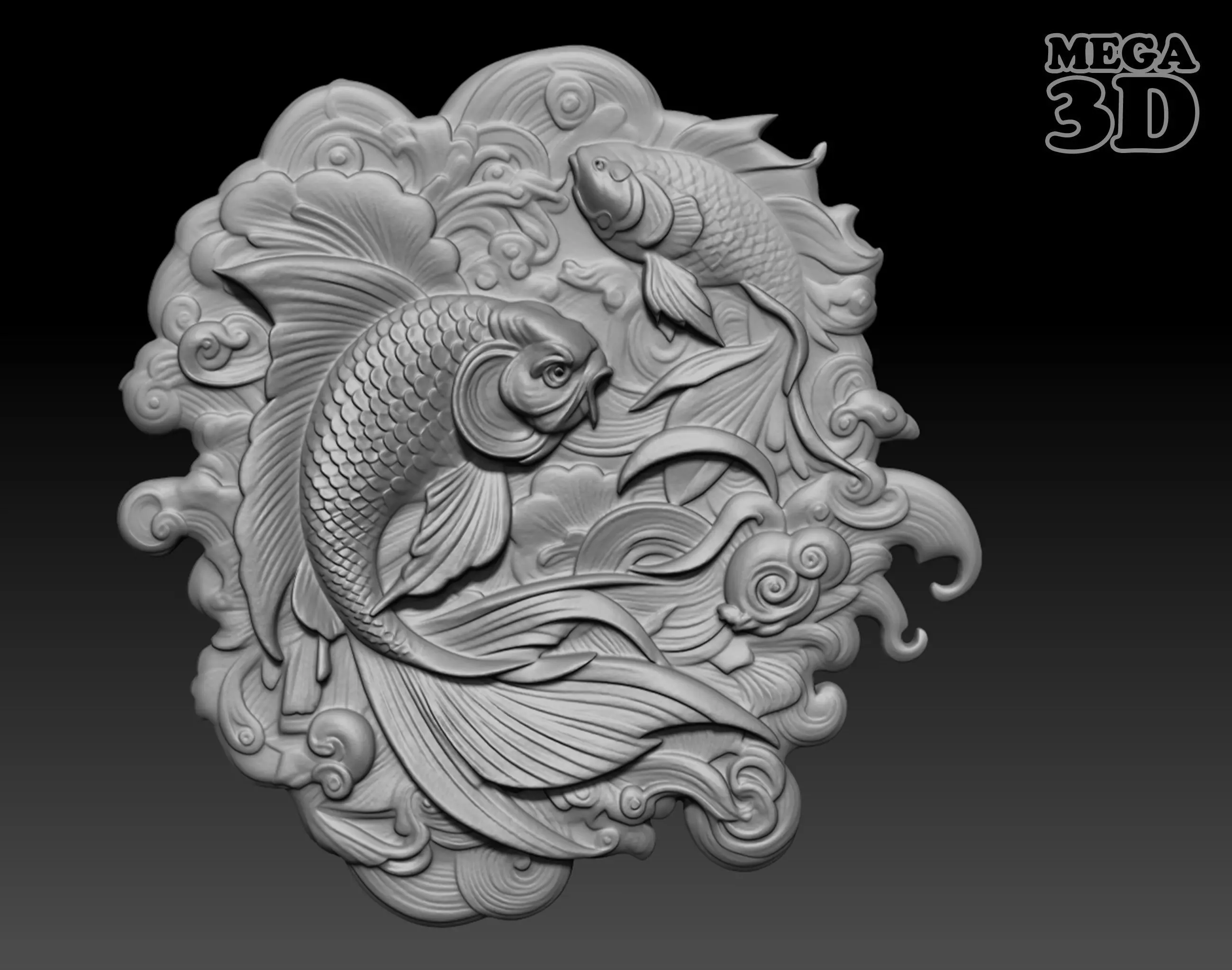 fish, koi, goldfish, animal, cnc, printing, relief, decor, milling, jewelry, artcam, art, engraving, carved, basrelief, woodworking, walldecor, sculptures