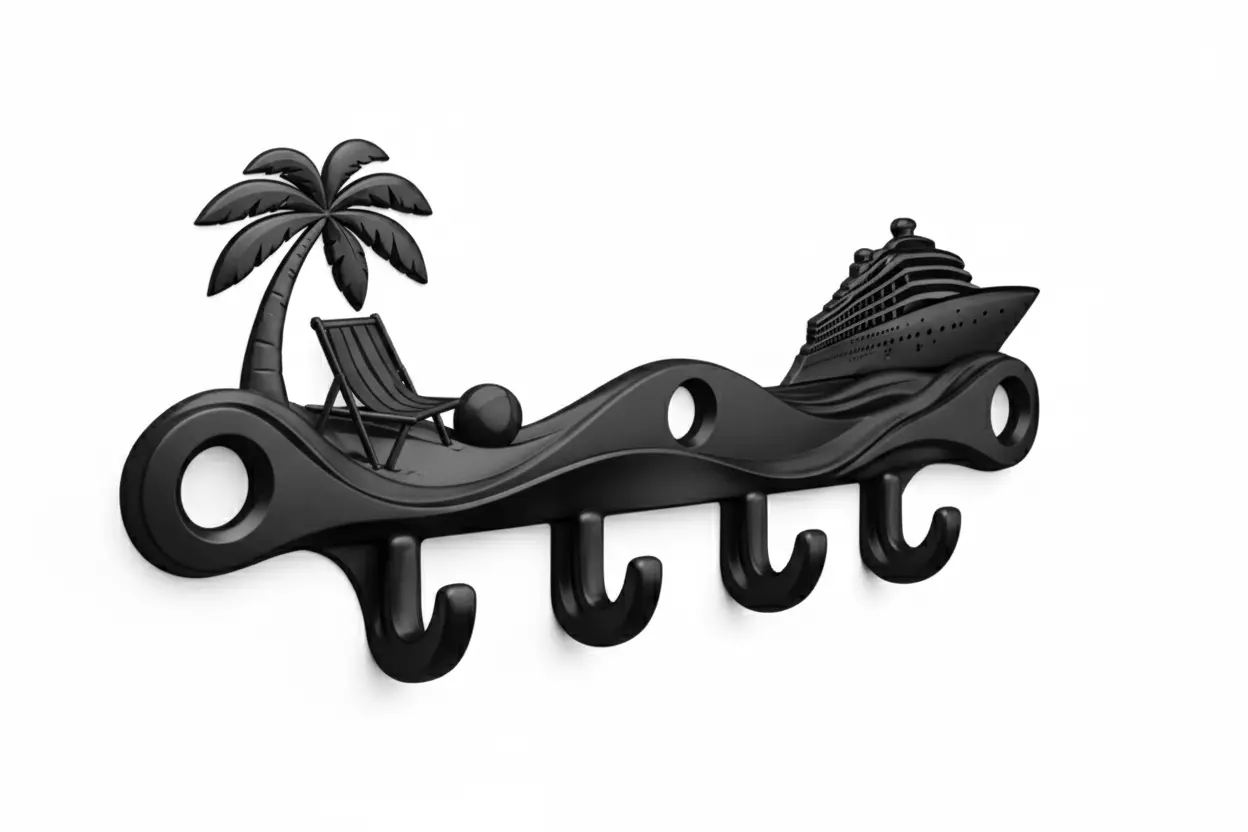 This creative 3D model features decorative wall hooks inspired by a beach lifestyle scene including palm tree chair beach ball and cruise ship elements designed for stylish home decorationThe design blends tropical vacation vibes with functional wall hooks making it perfect for coastal interiors beach houses kids rooms and modern decorative spacesThe model is created using advanced AI assisted 3D modeling techniques to achieve clean geometry smooth edges and balanced proportions for professional useIt is ideal for interior visualization product presentation wall decor concepts and themed home accessoriesThe model supports easy scaling and resizing and is fully suitable for 3D printing after adjusting the size according to your needsAvailable file formats include STL GLB FBX USDZ MP4 OBJ PNG GIF JPG ensuring full compatibility with CGTrader previews AR visualization animations and physical 3D print production