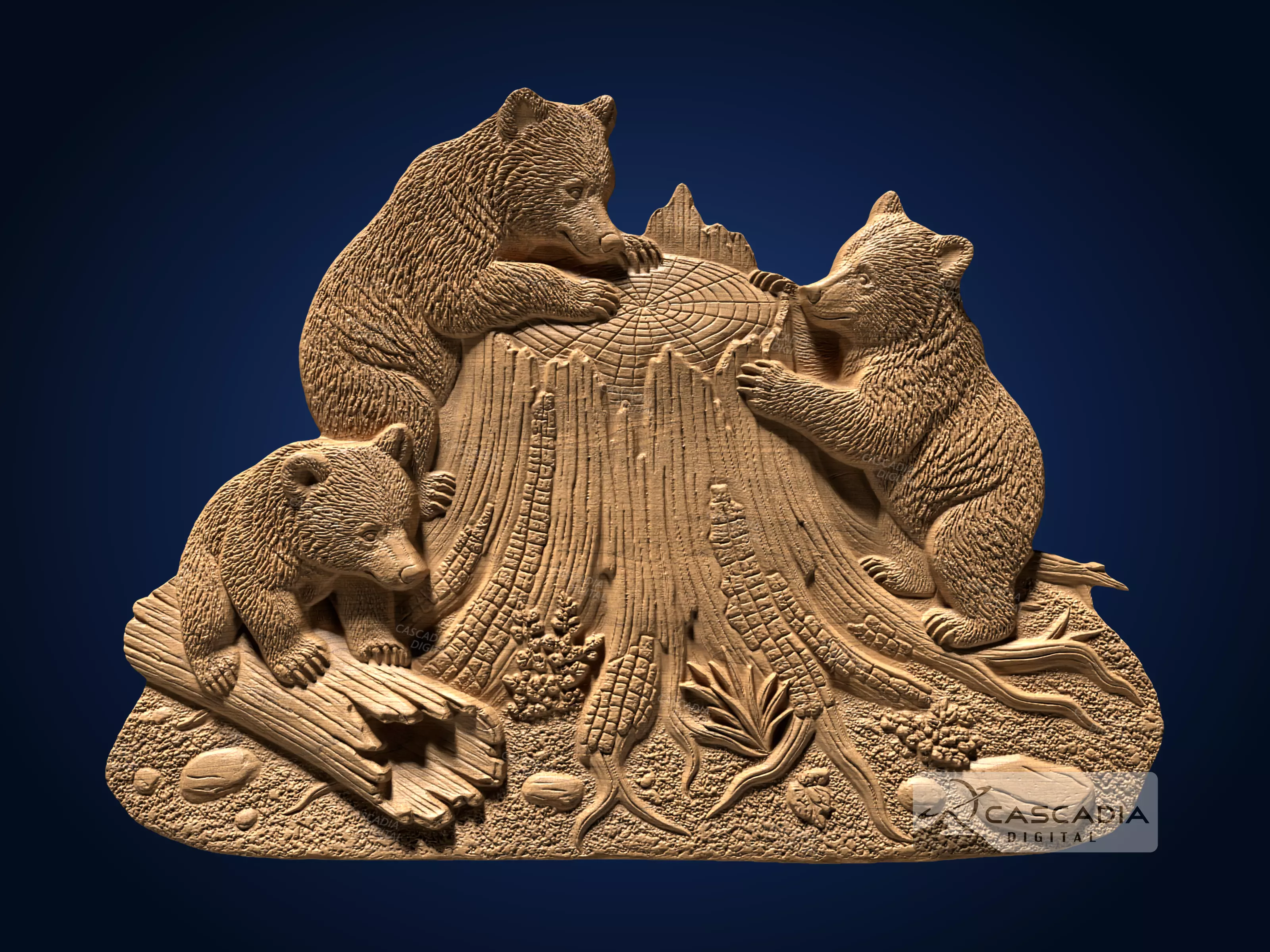 Bear Cubs Tree Stump - CNC Router Carving Casting nature 3D print model