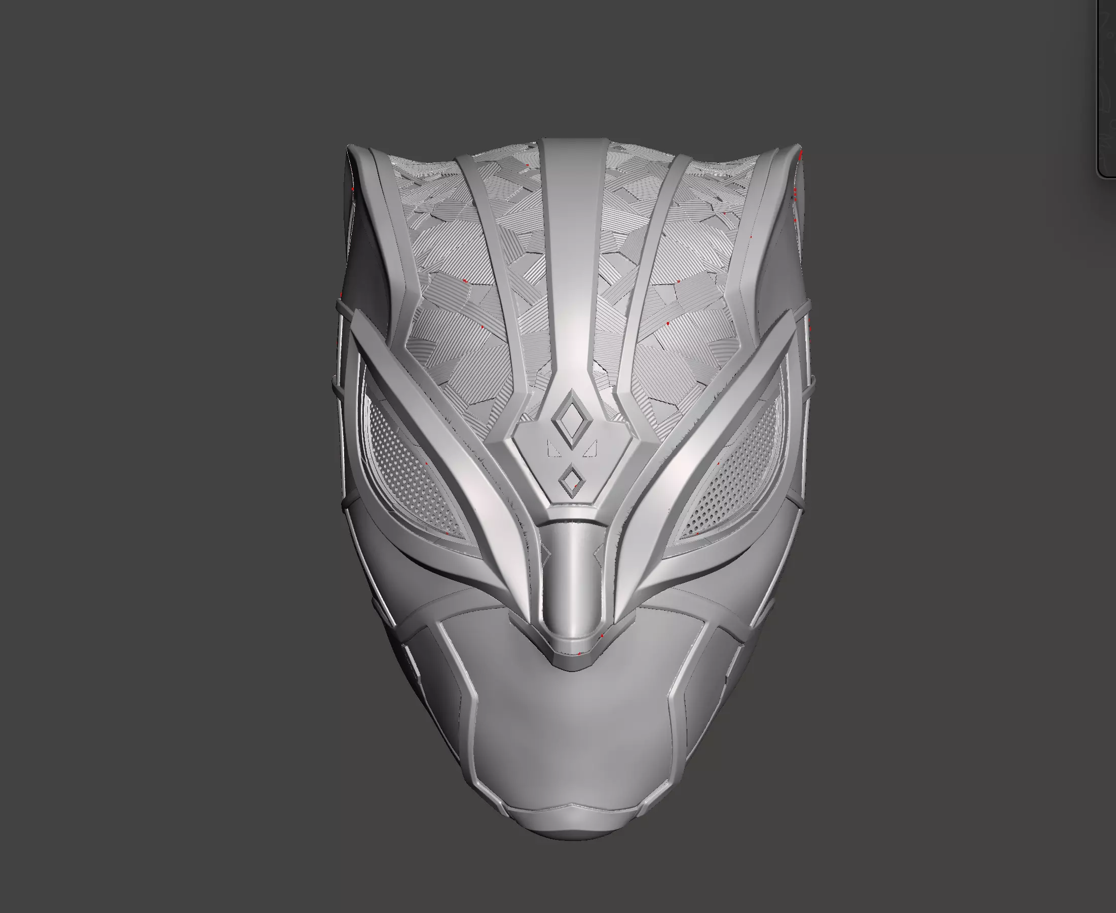 - High-poly, detailed sculpt of the Black Panther helmet face cover