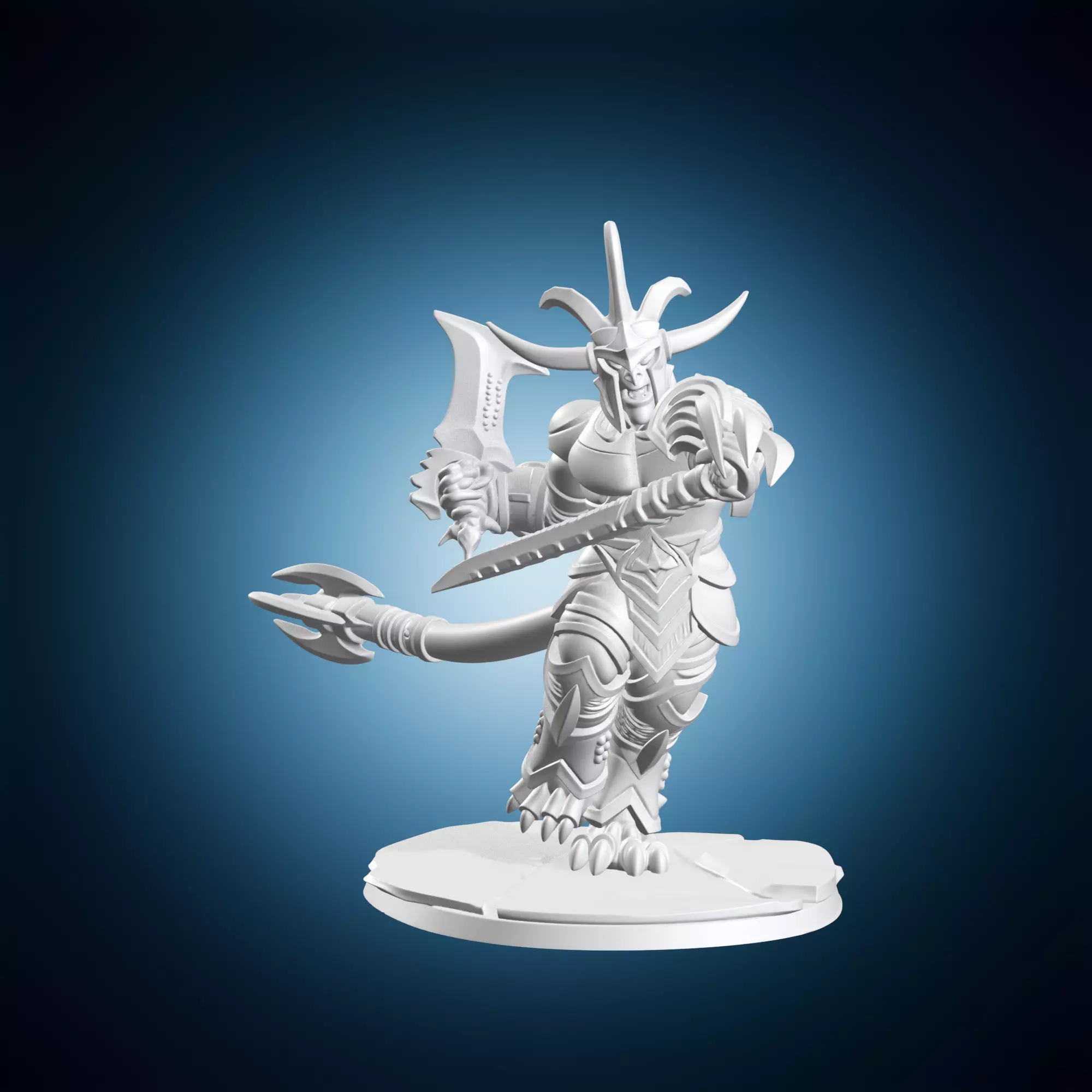A 3D miniature model depicting a demon from hell with blades and gates, sitting on a base. This piece is likely inspired by fantasy art or gaming. The miniature is highly detailed and showcases the artist's skill. The title suggests a dark, ominous tone, fitting for a work of art or collectible. A perfect addition to any fan of fantasy or gaming. The model can be used as a decorative item or as part of a diorama. With its intricate design and realistic textures, this miniature is sure to impress.