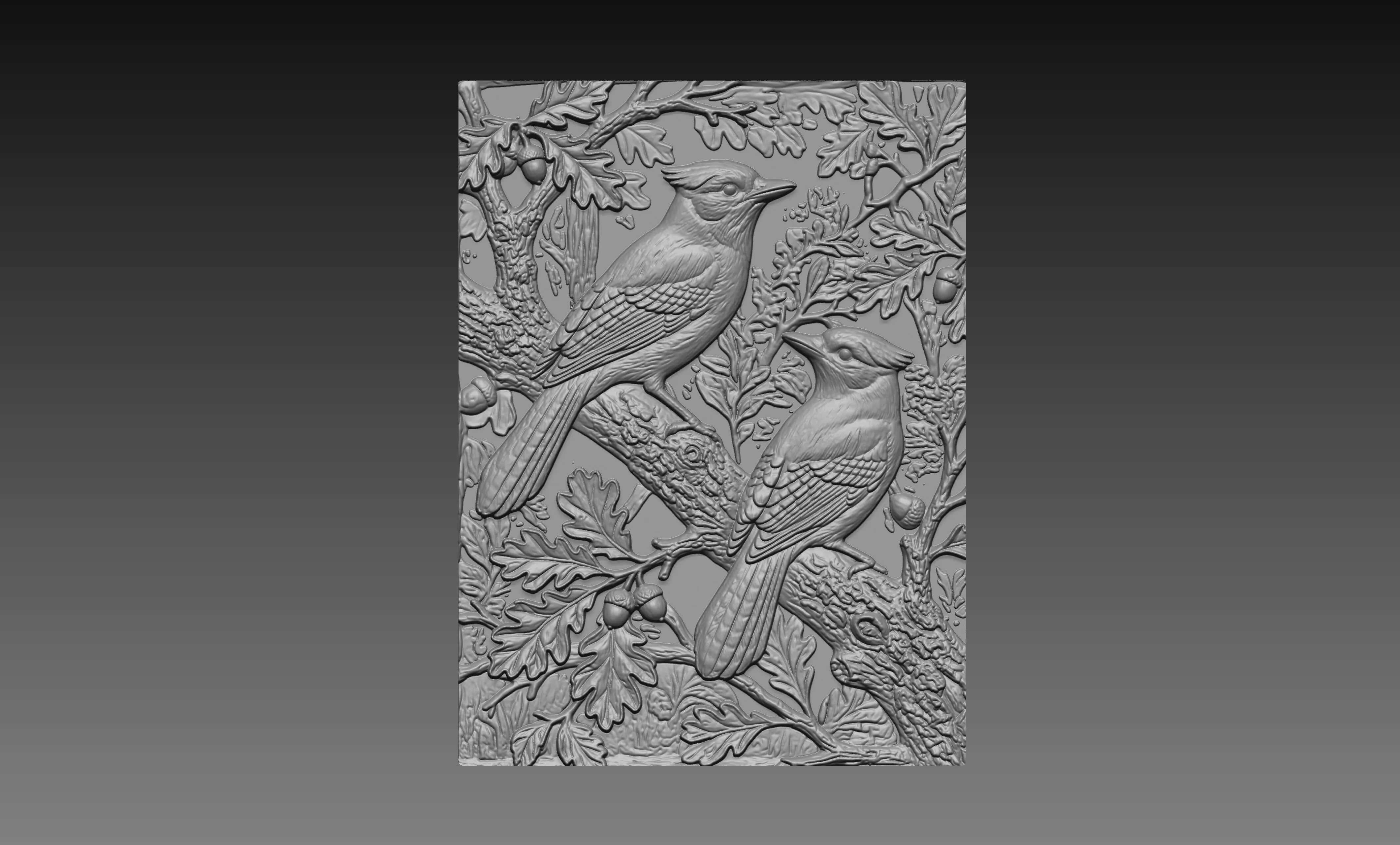 Designed with layered depth and fine detail, this bird relief model highlights feather texture, natural posture, and intricate oak elements—making it ideal for creating stunning CNC carvings, wood panels, and 3D printing projects.
