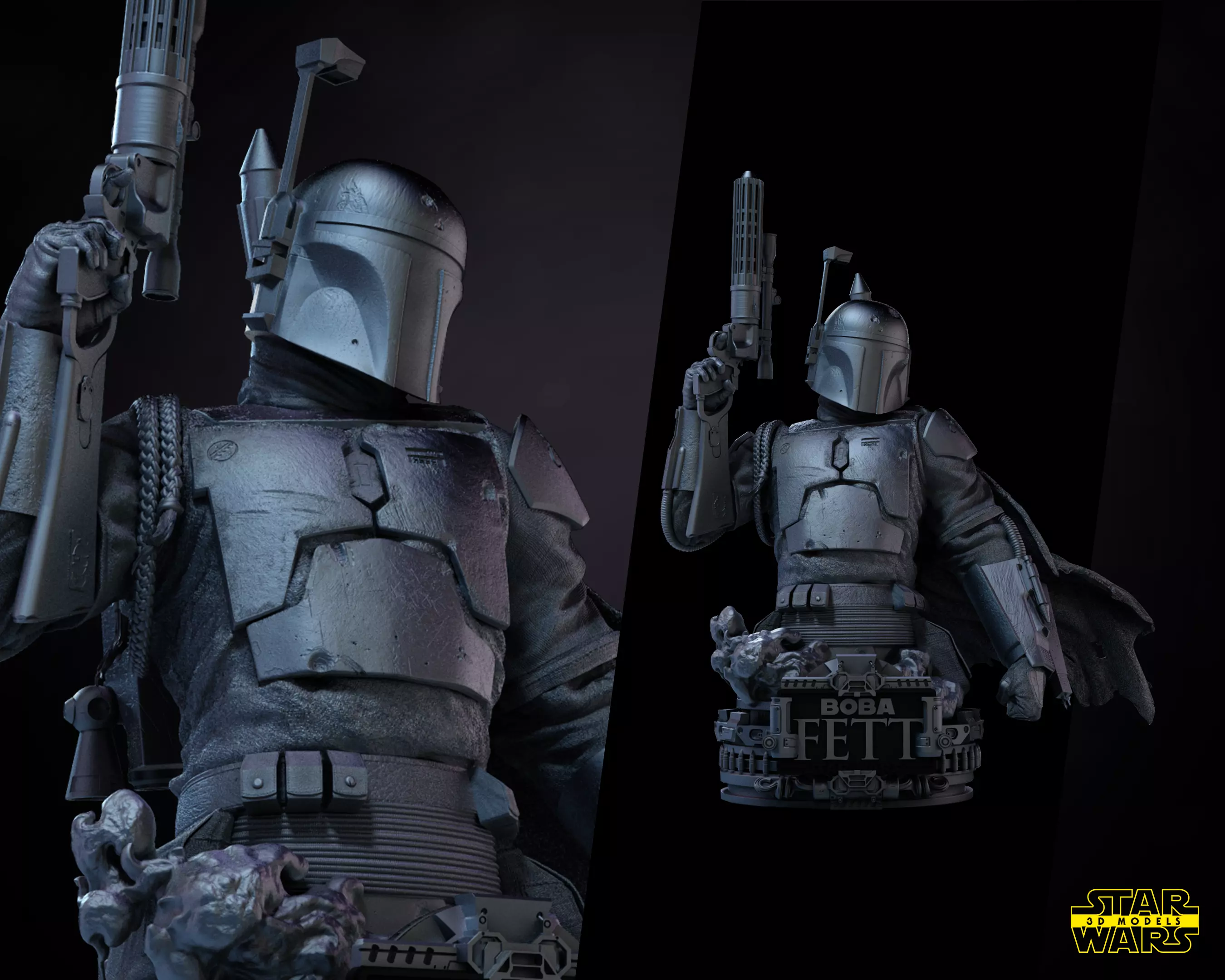 Star Wars 3D models are proud to present the Boba Fett Bust model.