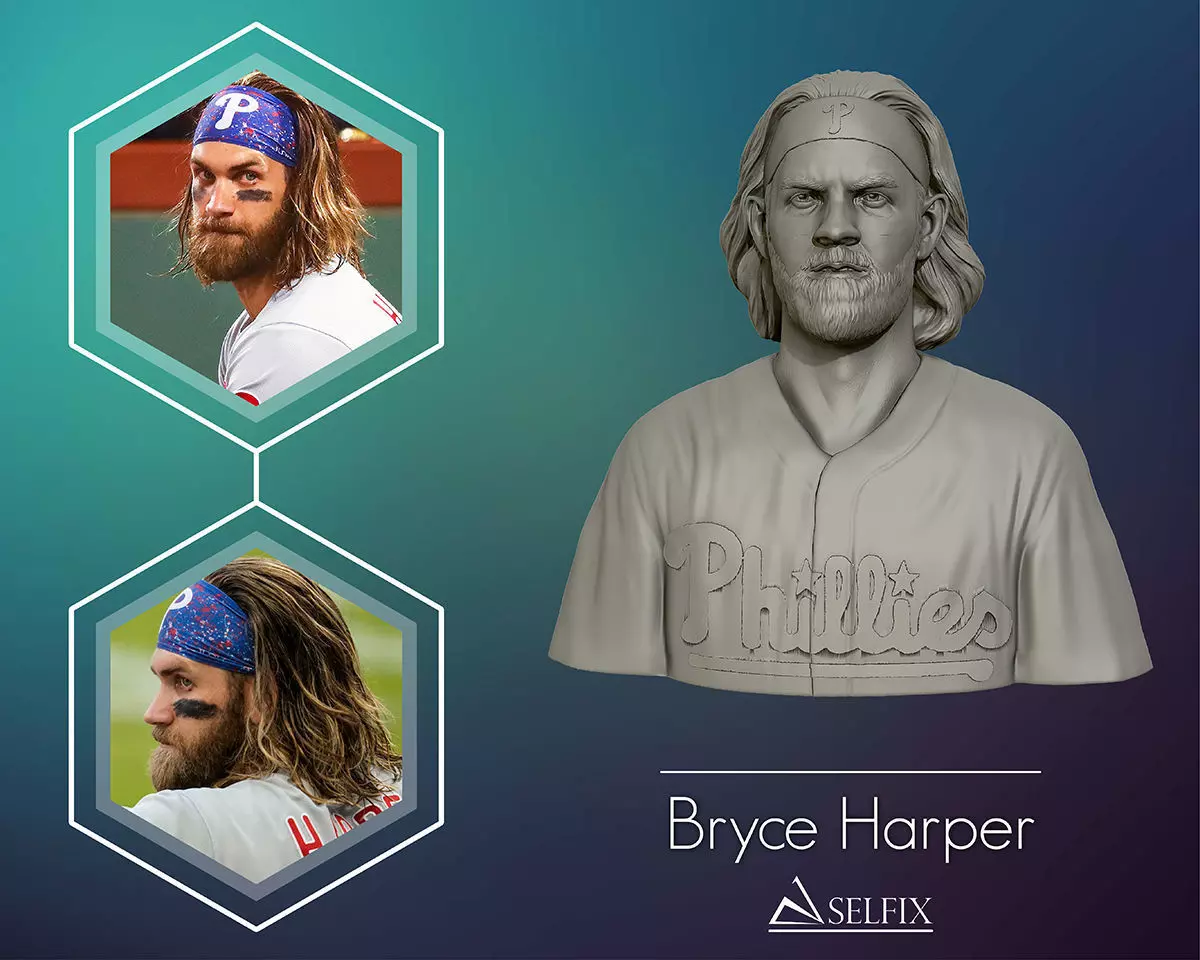 Bryce Harper 3D Sculpture is ready to 3D print in any size you want. the 3D portrait of Tom Brady is in STL and OBJ and other 3D formats. available with or without base in the files.