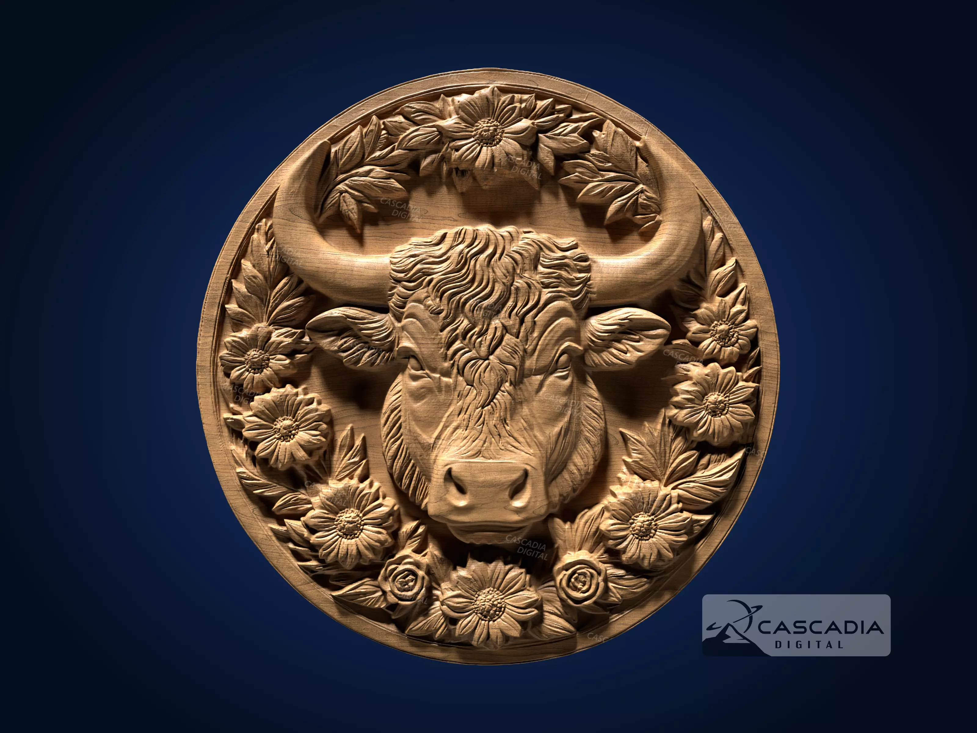 Bull Head Round - CNC Router Carving Casting Steer Cow 3D print model
